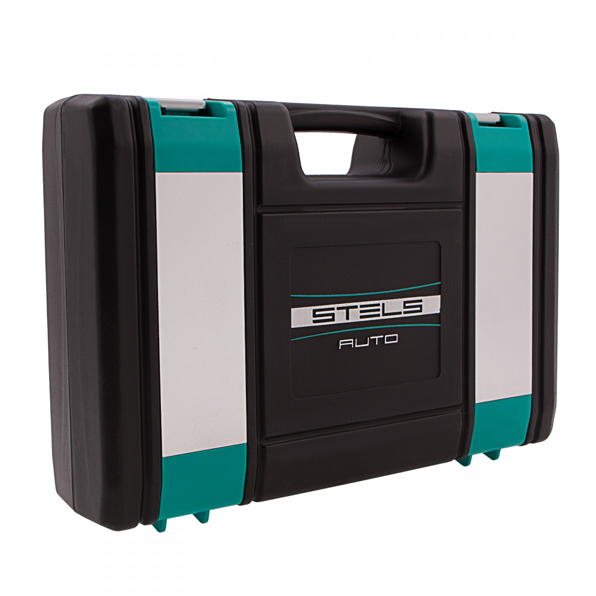 Набор инструментов Stels 14103 в пластиковом кейсе включает в себя 60 предметов с присоединительным размером 1/2 дюйма из стали CrV. Он применяется для монтажа и демонтажа резьбовых соединений во время обслуживания и ремонта авто, а также выполнения бытовых работ. Инструменты пригодятся автолюбителям и домашним мастерам.