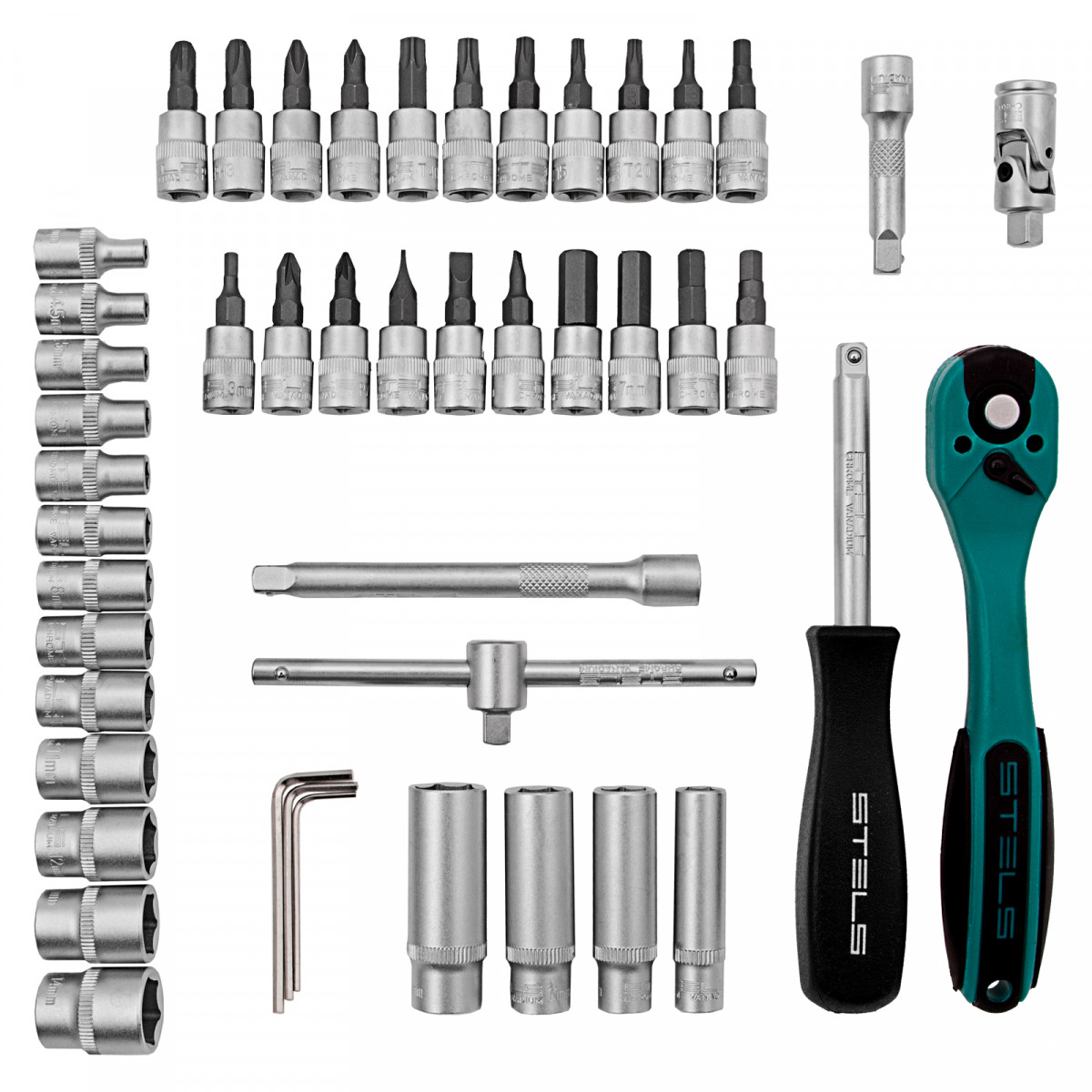 Набор инструментов Stels 14099 в ударопрочным пластиковом кейсе состоит из 47 предметов с присоединительным квадратом 1/4″, из стали CrV и S2, и предназначен для выполнения слесарно-монтажных работ. Включает инструменты и насадки для работы с резьбовыми крепежами, а также удлинители и т-образный вороток, облегчающие работу в труднодоступных местах. Набор предназначен для профессионального использования в автомастерской, будет полезен и для решения бытовых задач.