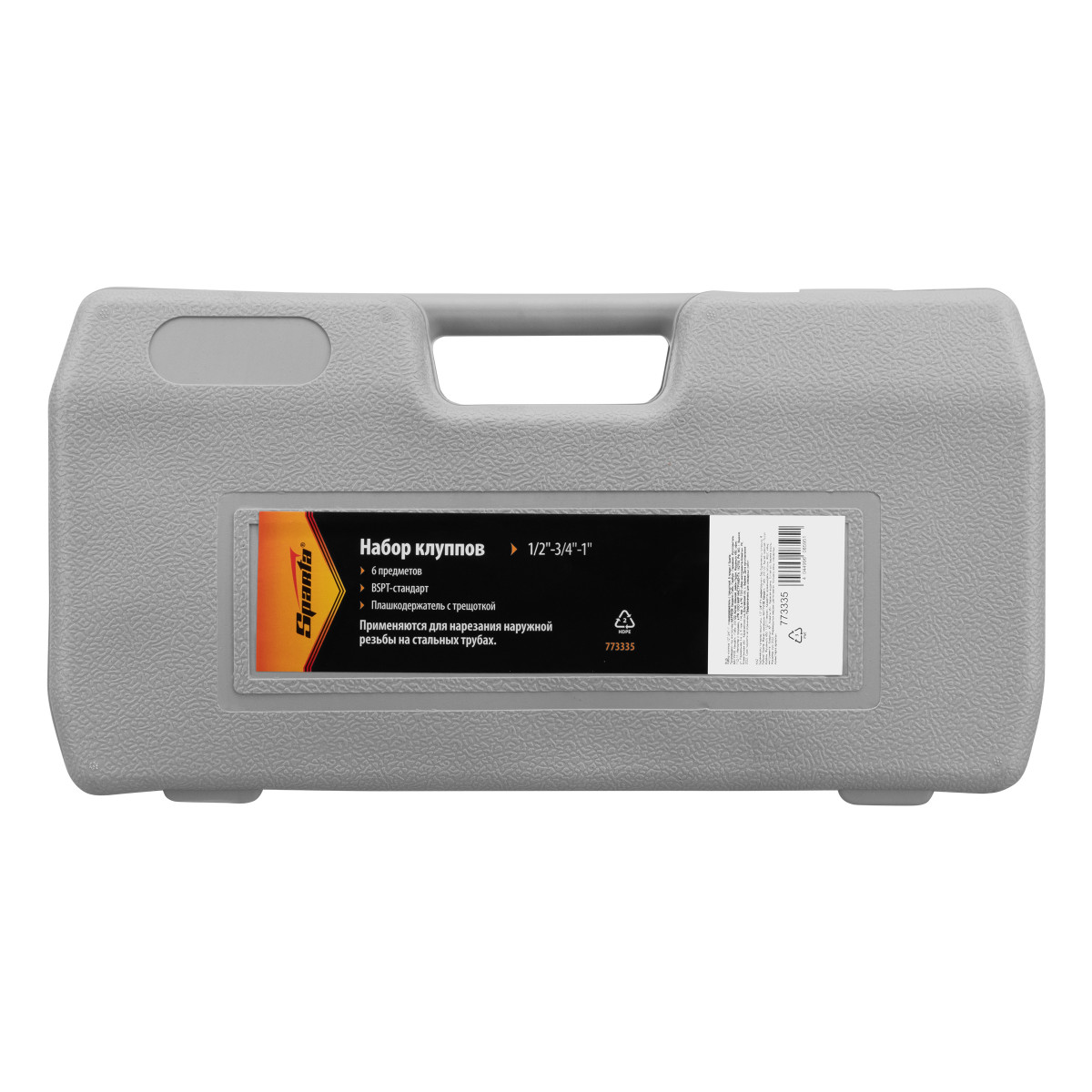 Набор клуппов 1/2-3/4-1, плашкодержатель с трещоткой, 6 предметов Sparta