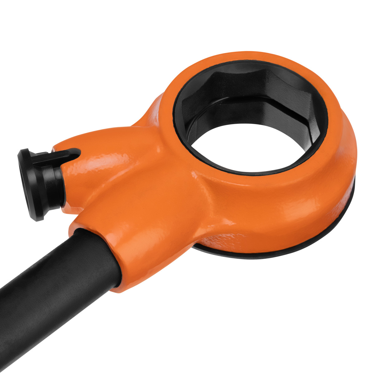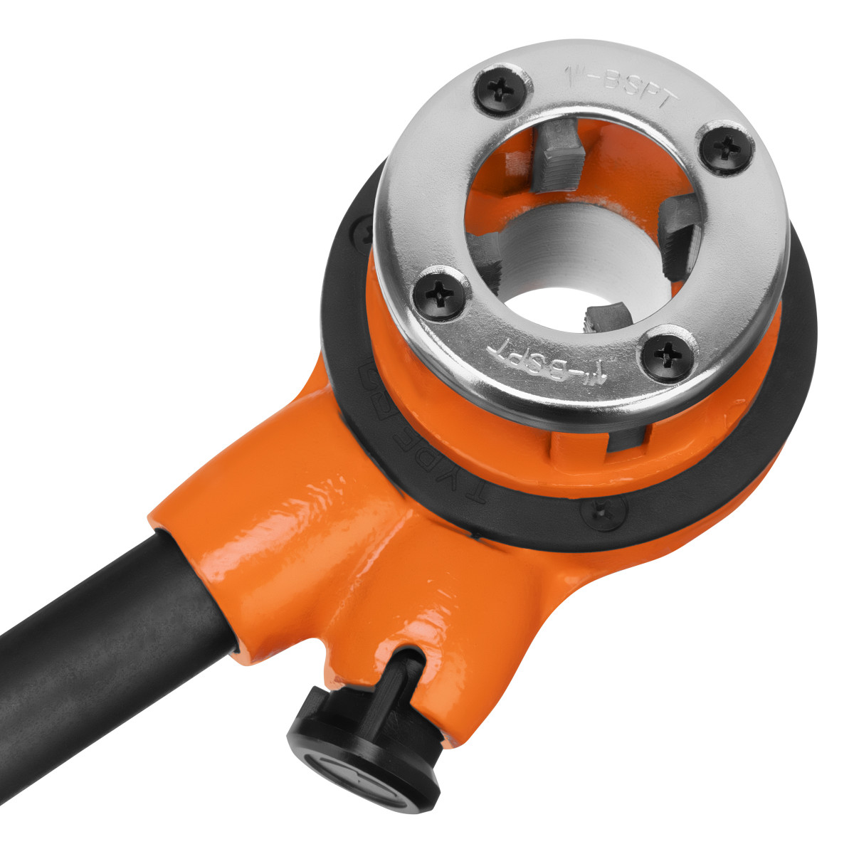 Трещоточный механизм плашкодержателя обеспечивает эффективную передачу рабочего усилия и удобство работы в труднодоступных местах.