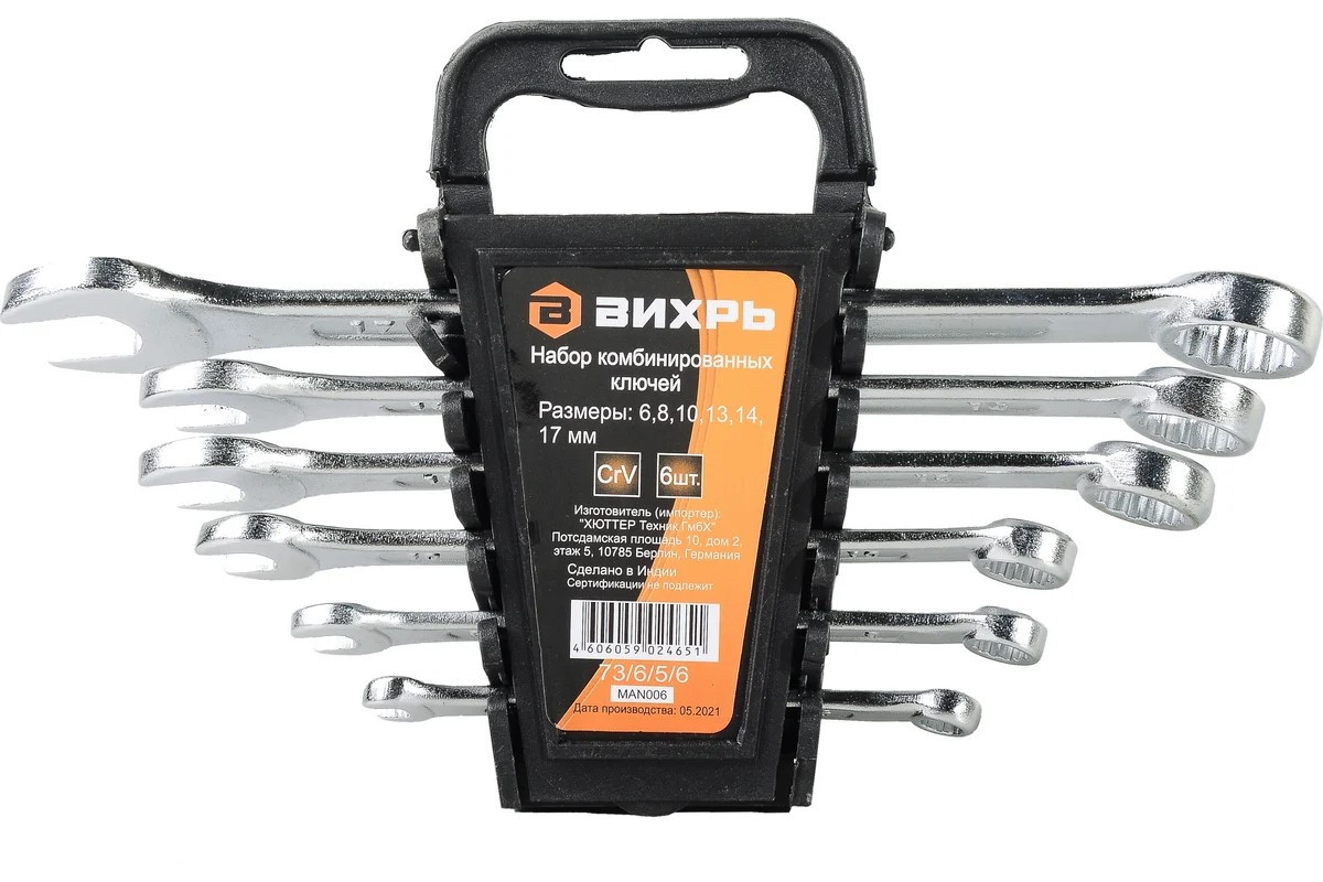 Набор комбинированных ключей Вихрь состоит из 6 штук с размерами от 6 до 17 мм:6,