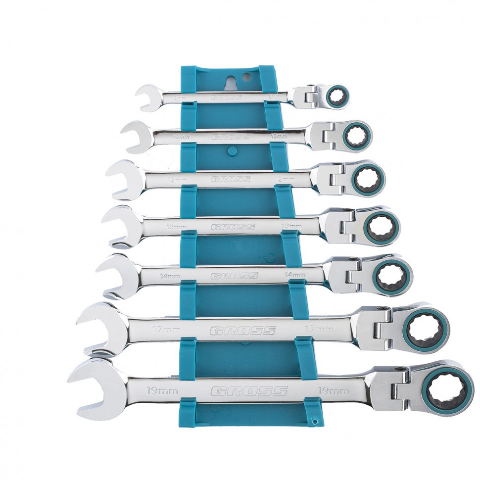 Набор ключей комбинированных 8-19 мм 7 шт с трещоткой шарнирные GRОSS