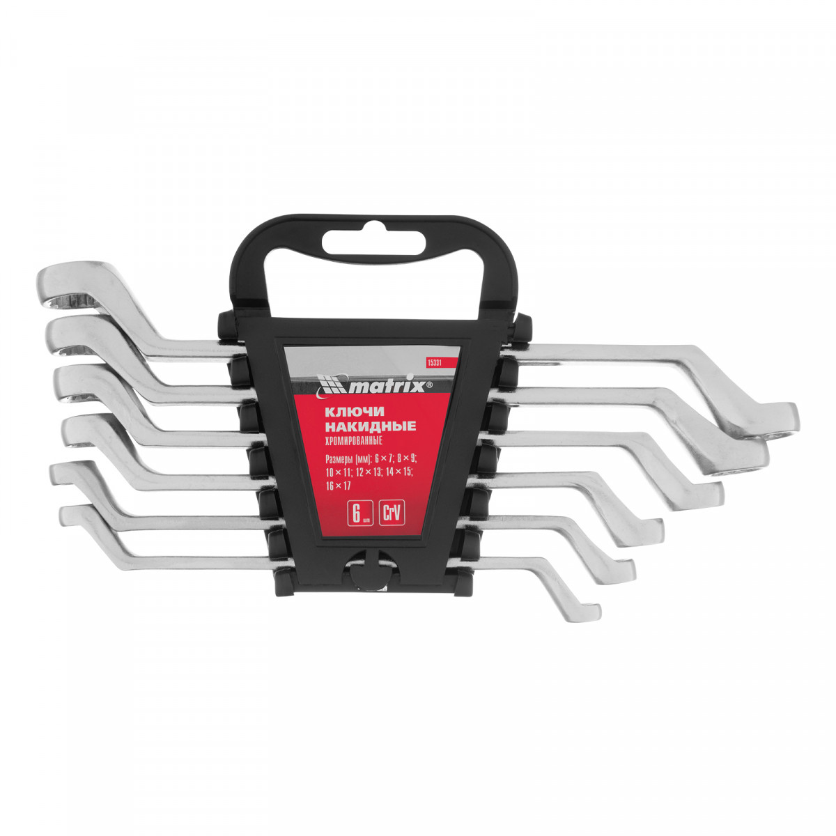 Набор ключей накидных, 6-17 мм, CR-V, 6 шт, полированный хром Matrix