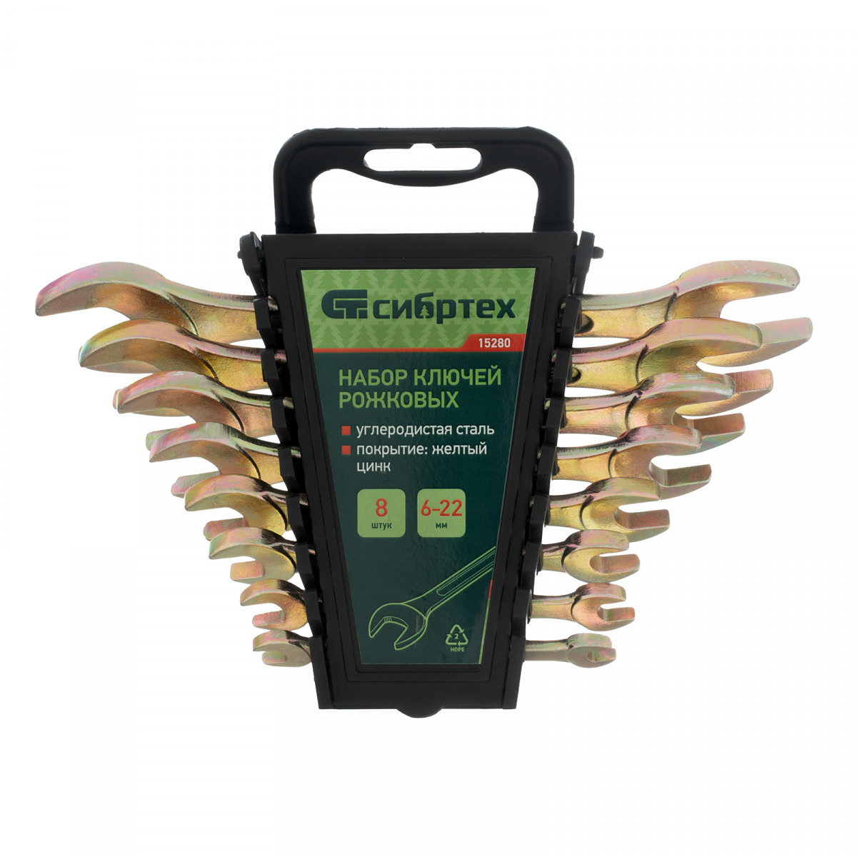 Набор ключей рожковых 6-22 мм, 8 шт, желтый цинк Сибртех