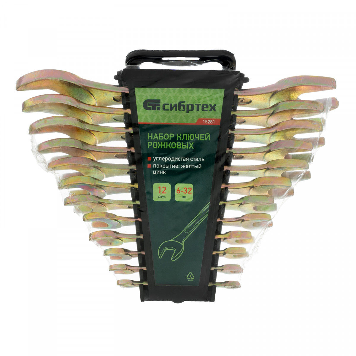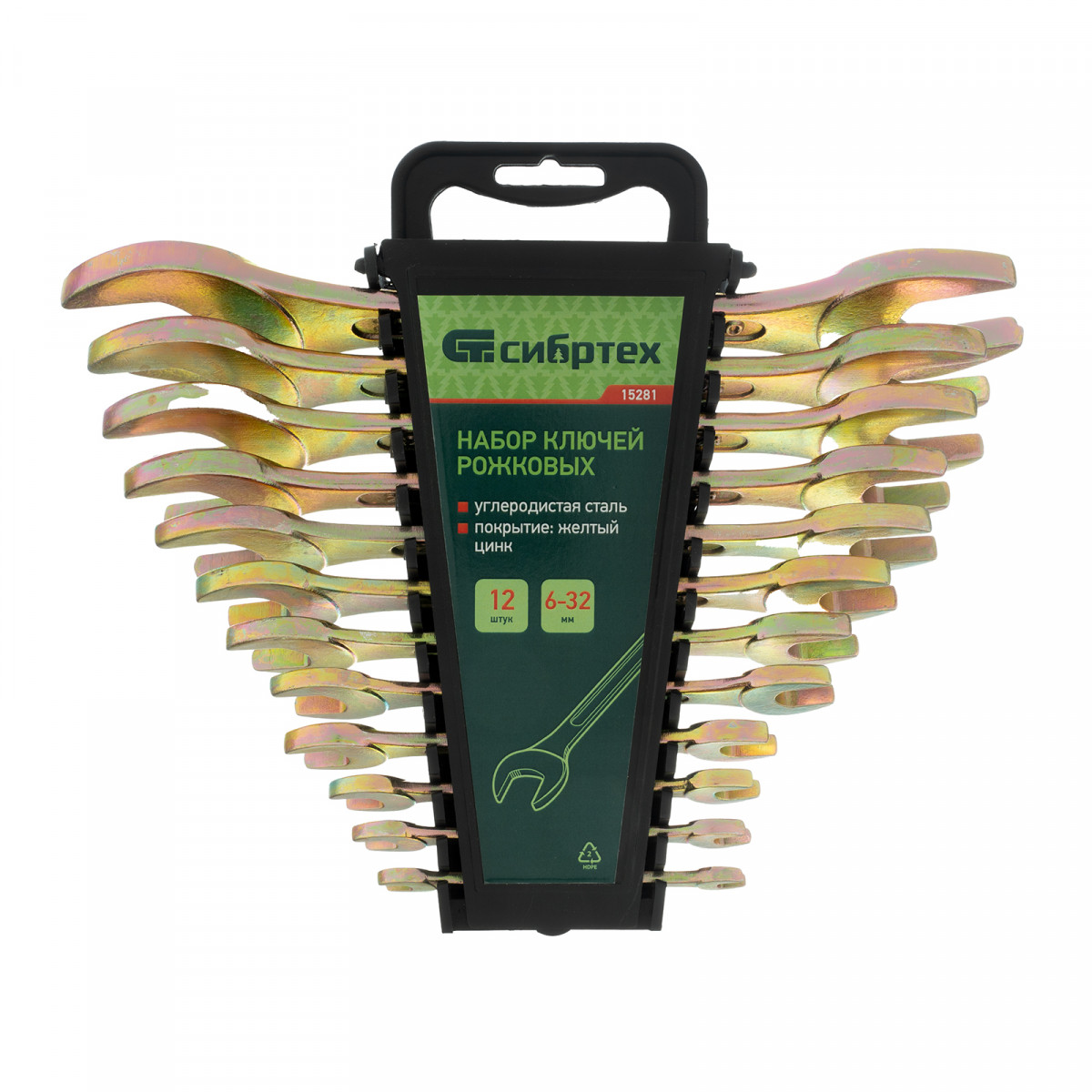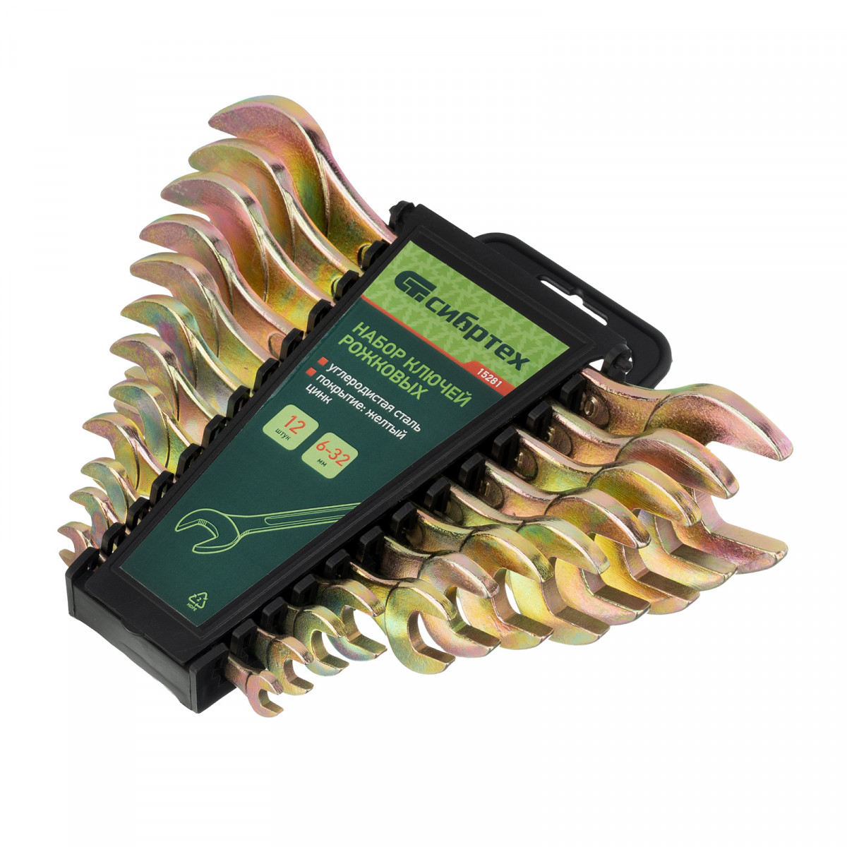 Набор ключей рожковых 6-32 мм, 12 шт, желтый цинк Сибртех