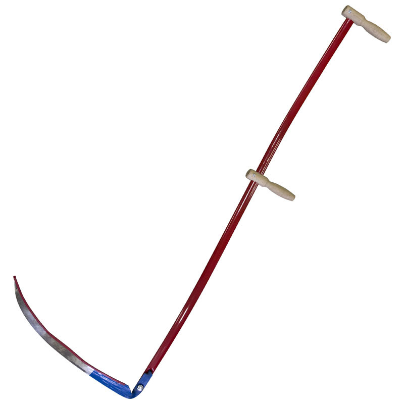 Коса длиной 50 см имеет металлическое косовище и две деревянные ручки. Косовище изогнуто для удобства кошения травы, ивняка, мелкой поросли. В собраном виде коса прижимается к косовищу и имеет защитный чехол на лезвие.