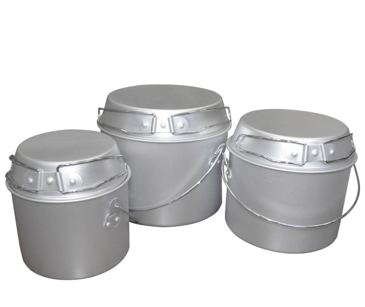 В комплект входит: - котелок 1 л с крышкой-сковородой; - котелок 2 л с крышкой-сковородой; - котелок 3 л с крышкой-сковородой; - чехол из нейлона. Может использоваться на костре или горелке. Снабжен дополнительной ручкой для удобства разливания чая. Материал: алюминий. Габариты (см): 0,195x0,194x0,178.