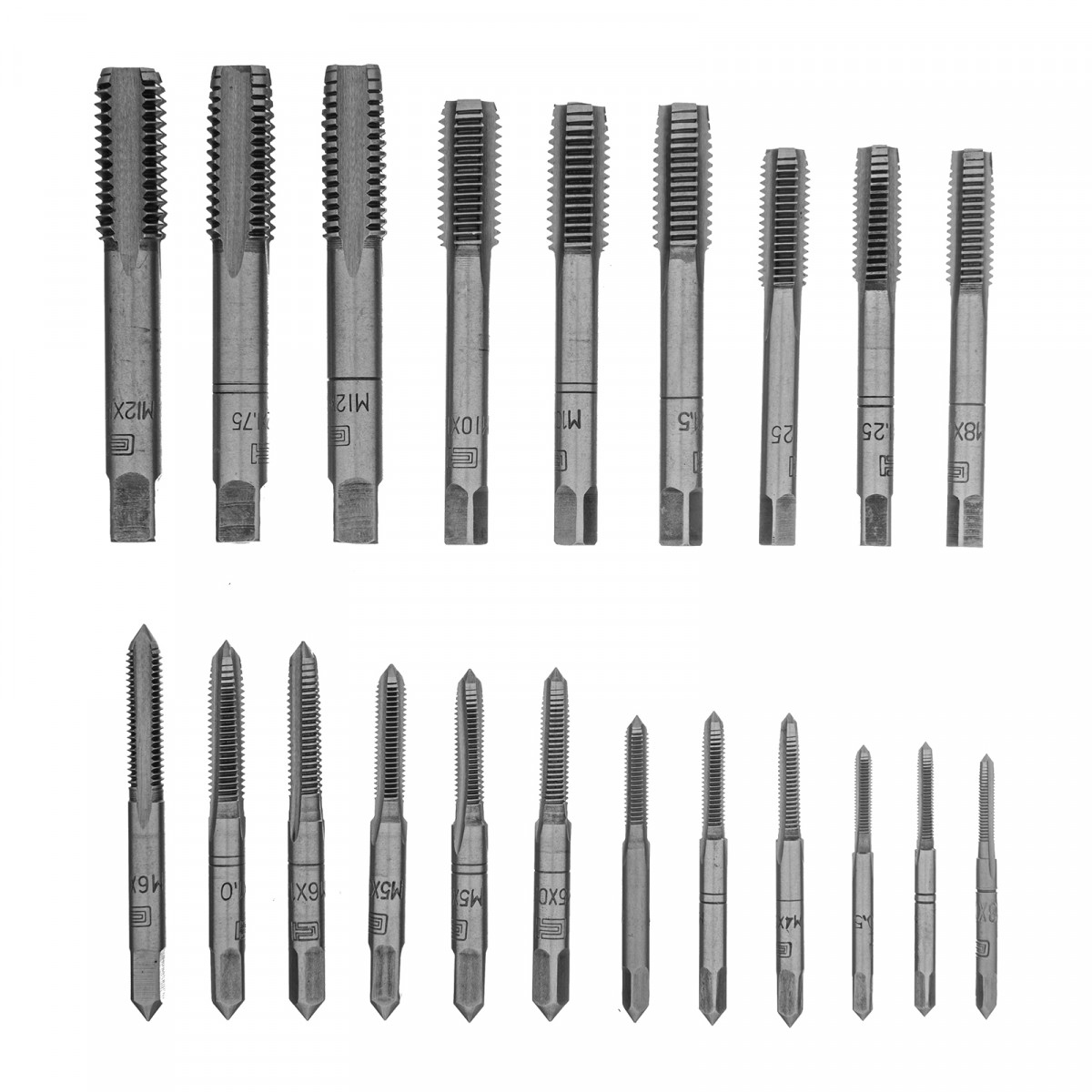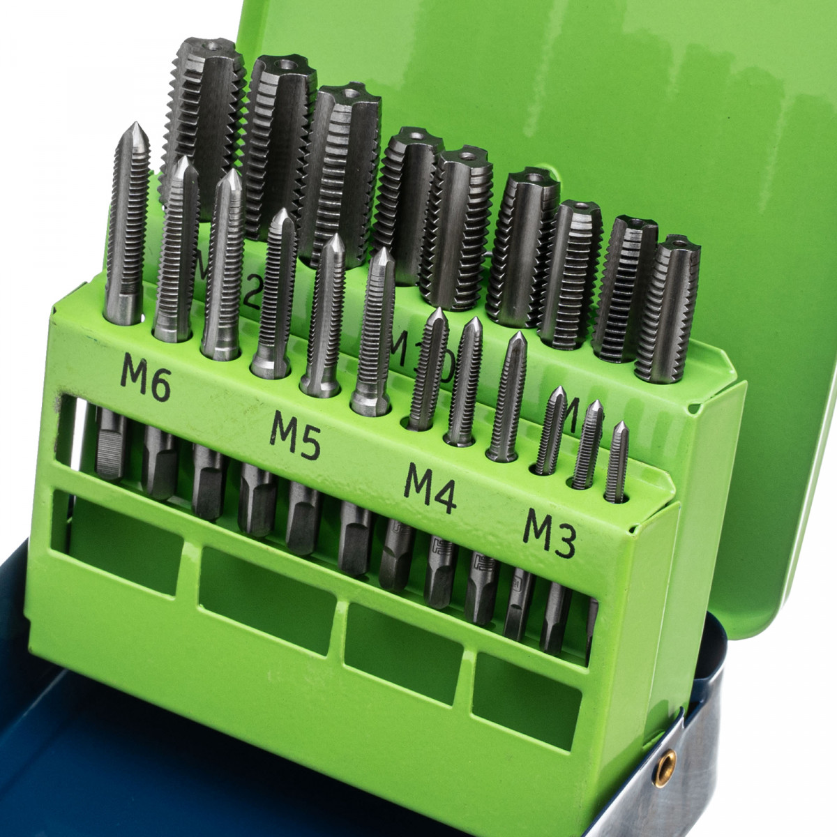 - Высокое качество резьбы — в набор входит по 3 метчика каждого размера: №1 для первичного прохода, №2 для повышения точности витков и №3 для финишной доводки.