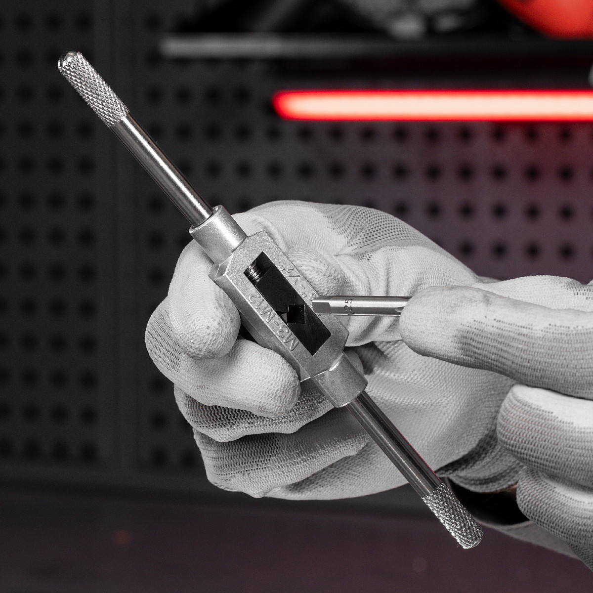 - Надежная фиксация метчиков — воротки оснащены регулируемым винтовым механизмом.