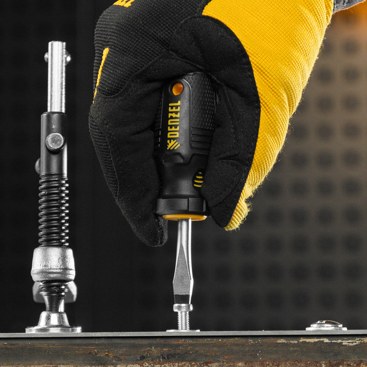 Набор Denzel 122137 состоит из 8 отверток с трехкомпонентными рукоятками, изготовленных из стали S2 и предназначенных для работы с резьбовым крепежом типа PH и SL. Благодаря намагниченным высокоточным шлицам направлять отвертки с крепежом можно одной рукой. Отвертка с длиной стержня 38 мм удобна для работы в ограниченном пространстве. Набор подходит для профессионального использования.
