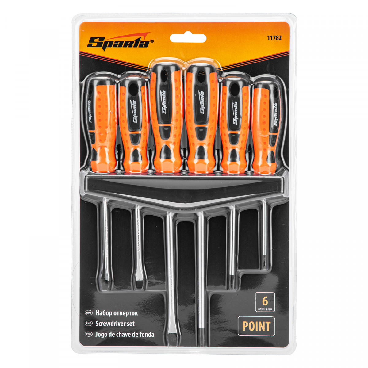 Набор отверток "Point", CrV, двухкомпонентные рукоятки, 6 шт, Sparta