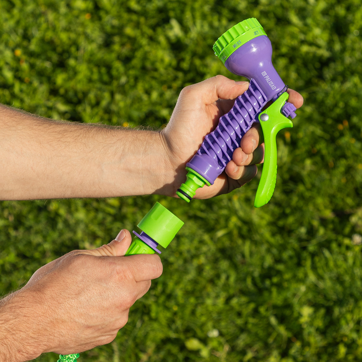 - Выбор оптимального режима полива — регулируемое сопло позволяет менять тип и мощность струи.
