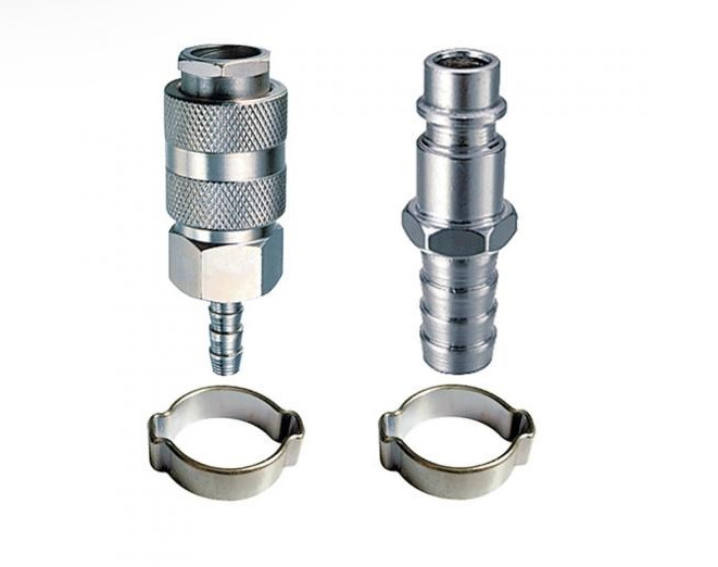 Набор FUBAG 180421 В используется совместно с компрессорным оборудованием для соединения шланга с пневмоинструментом. Крепится к инструменту с помощью соединения рапид, а к шлангу - ёлочкой. В комплекте поставляется: фитинг рапид мама-елочка, фитинг рапид папа-елочка и два обжимных кольца. Созданная конструкция обладает высокой надежностью и герметичностью. Поставляется в блистере.