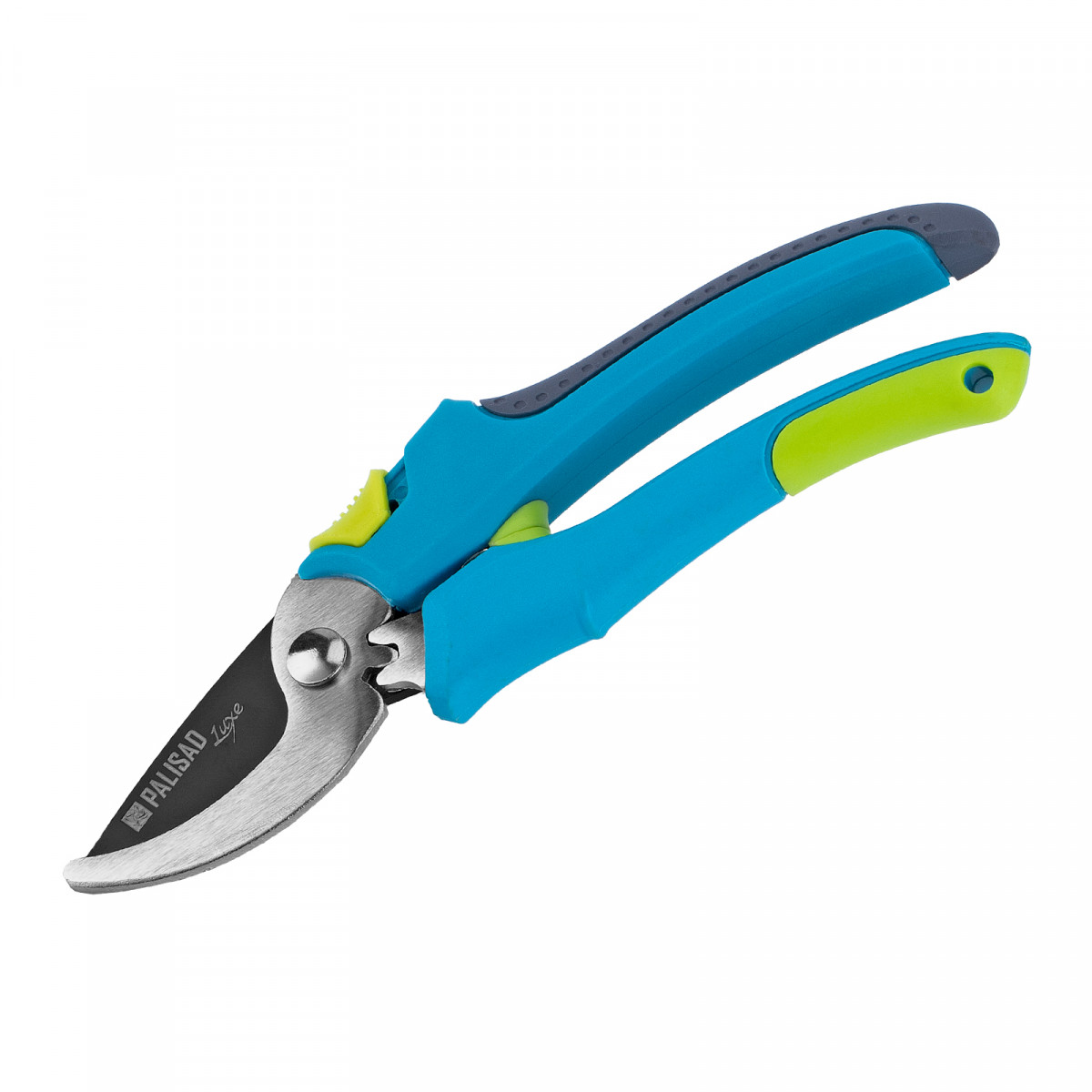 - Удобный хват — на рукоятках инструментов предусмотрены резиновые вставки, нижняя рукоятка секатора имеет подпальцевую выемку.