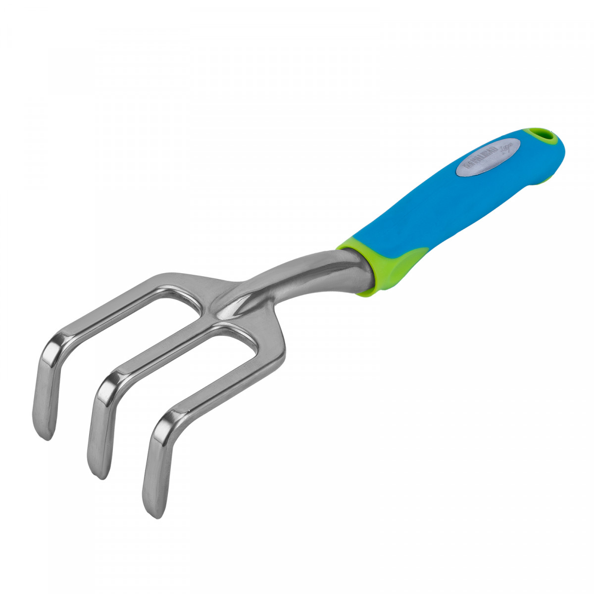 - Удобная эксплуатация — на рабочей части совка имеется мерная шкала, позволяющая контролировать глубину погружения в почву, зубья рыхлителя с заостренными кончиками легко проникают в грунт.