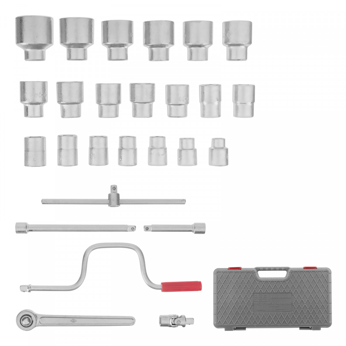 Набор шоферского инструмента № 4 НИЗ 13454 в пластиковом боксе пригодится автомобилистам для технического обслуживания и ремонта машин. Он содержит 20 торцевых головок типоразмеров 10, 12-28, 30 и 32 мм для монтажа крепежных элементов, трещотку для их зажима, удлинители и коловорот для работы в труднодоступных местах, шарнир и ключ с присоединительным квадратом.