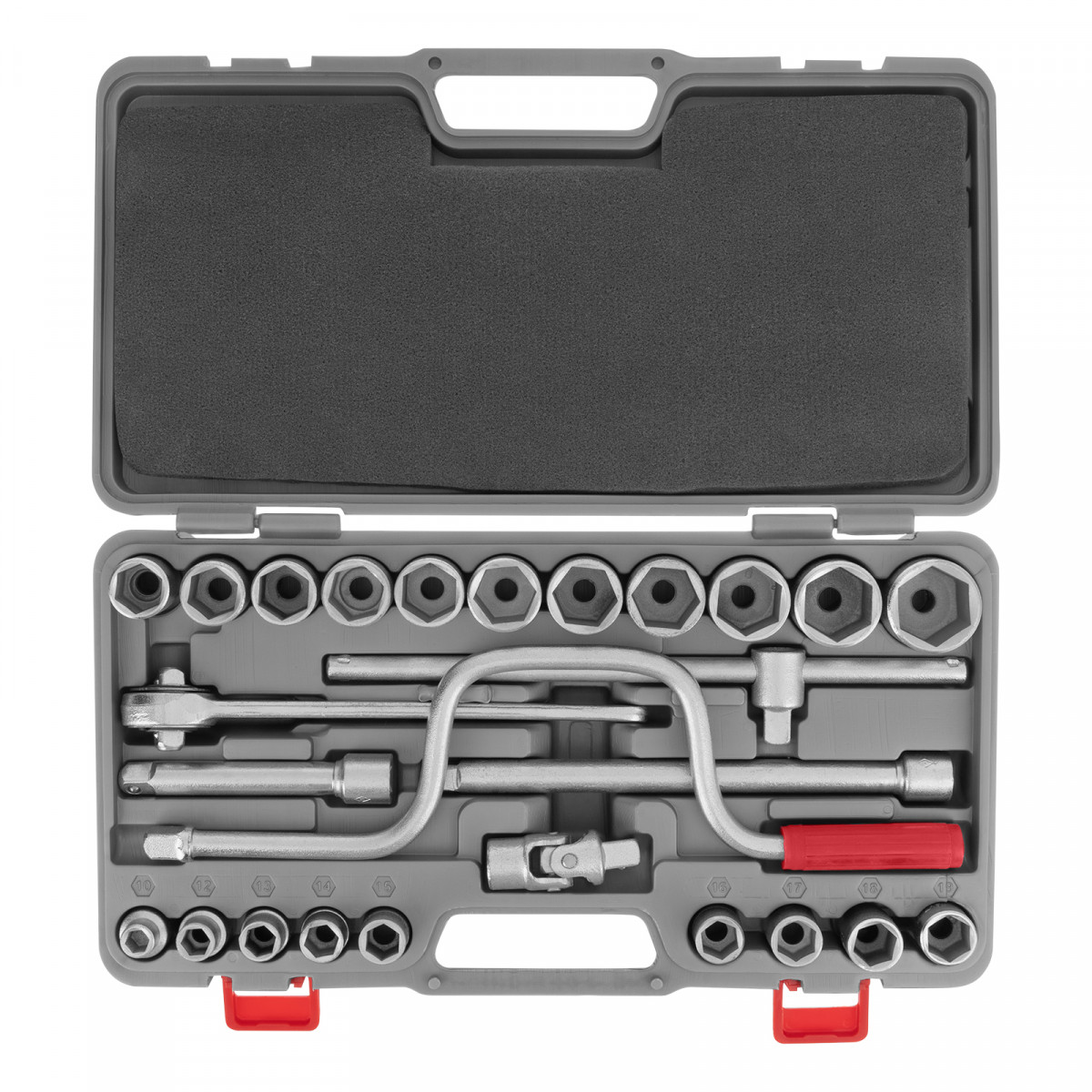 - Удобное хранение и транспортировка — набор поставляется в пластиковом боксе с подписанными номерами торцевых головок.