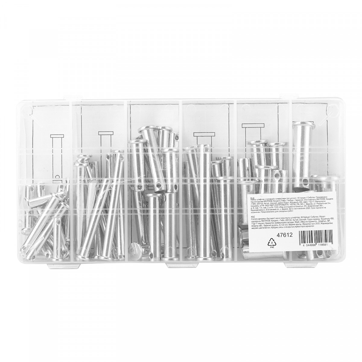 - Быстрый поиск нужного крепежа — штифты помещены в индивидуальные отсеки с маркировкой размеров.