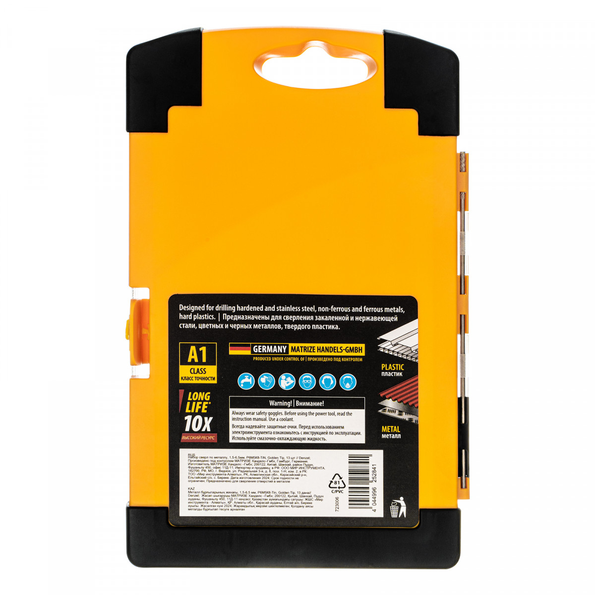 Набор сверл по металлу, 1,5-6,5мм, Р6М5К8-TiN, Golden Tip, 13 шт Denzel