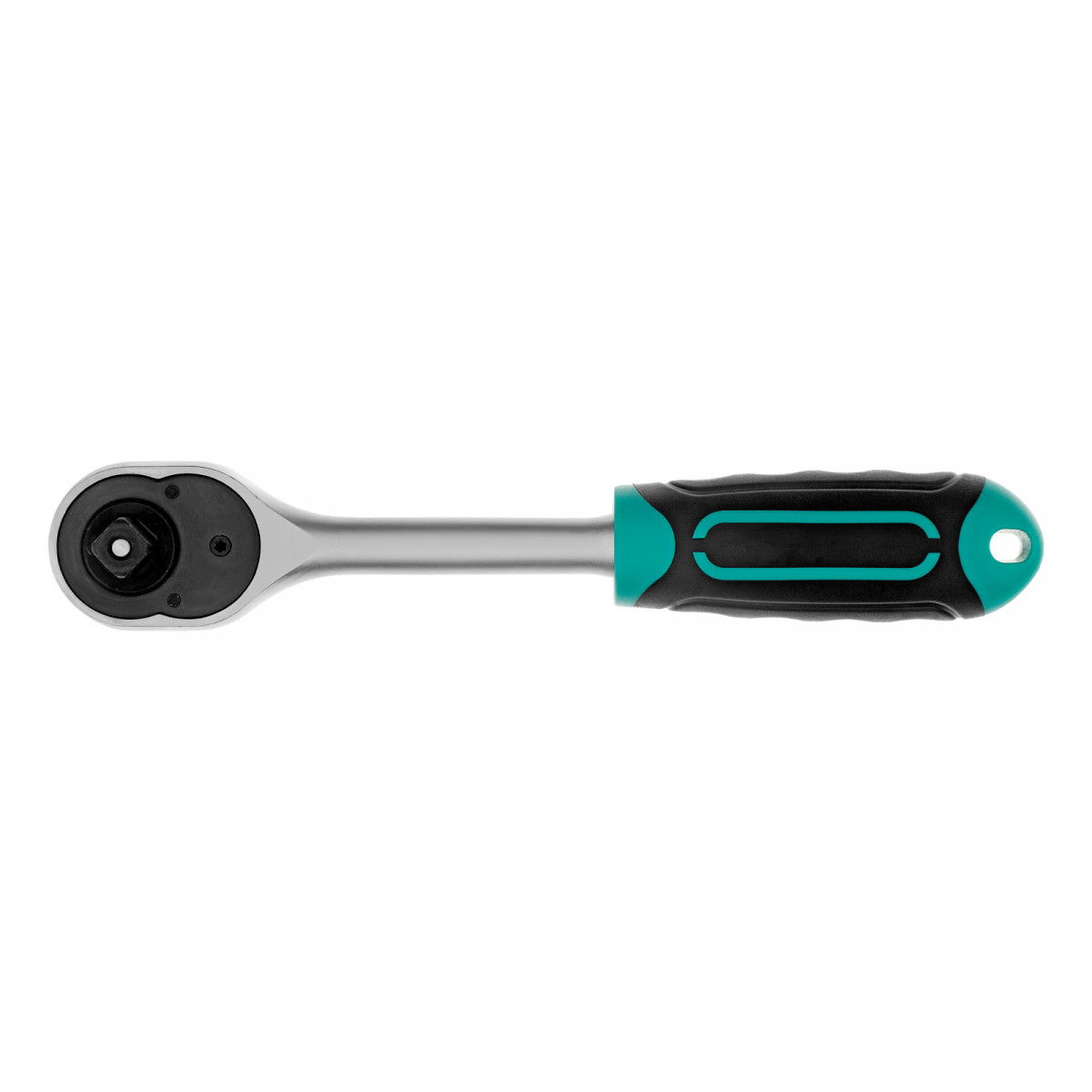 - Надежная фиксация оснастки — присоединительный квадрат трещотки оснащен шариковым держателем.