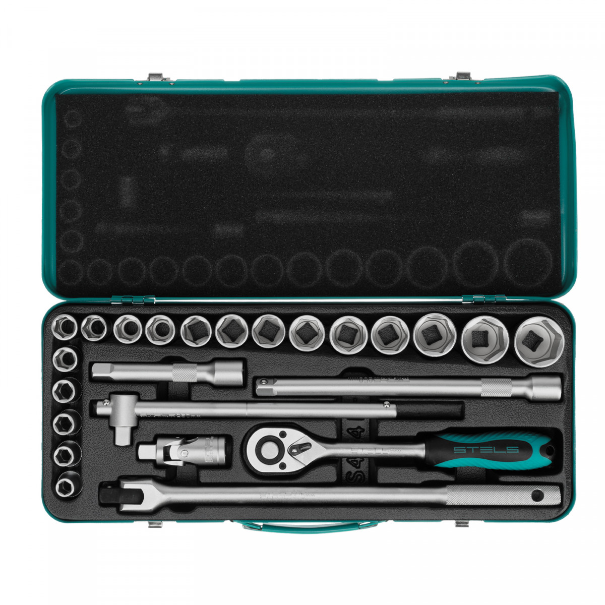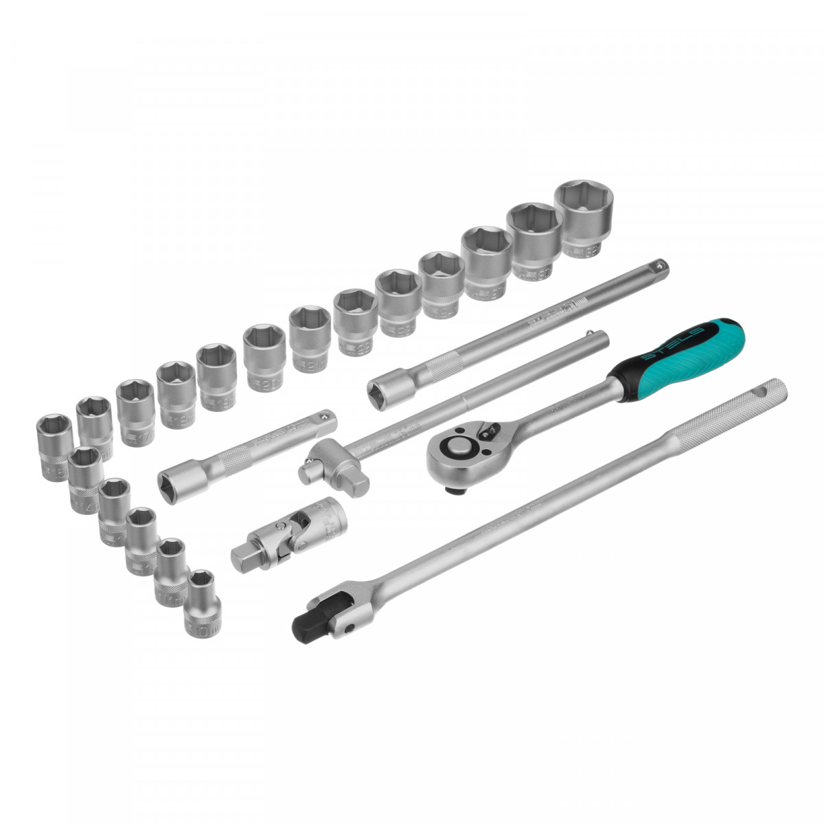 Набор торцевых головок с трещоткой 1/2", 24 предмета Stels