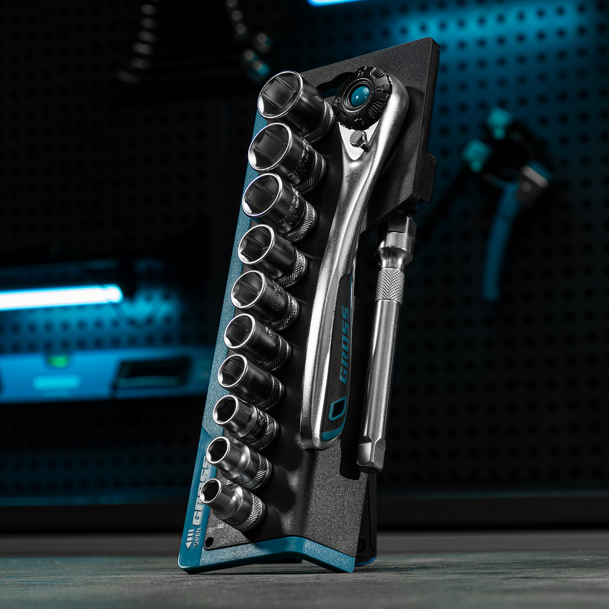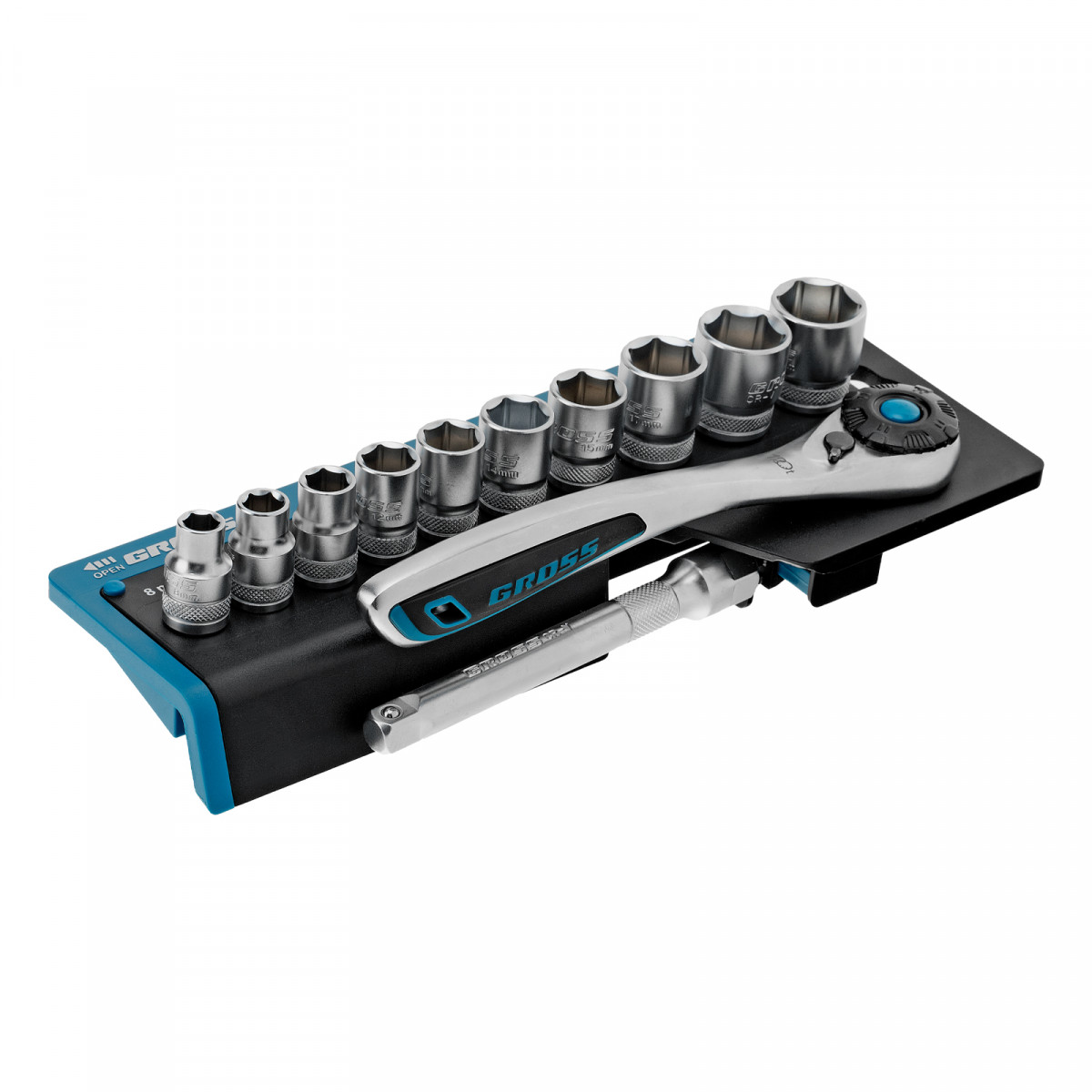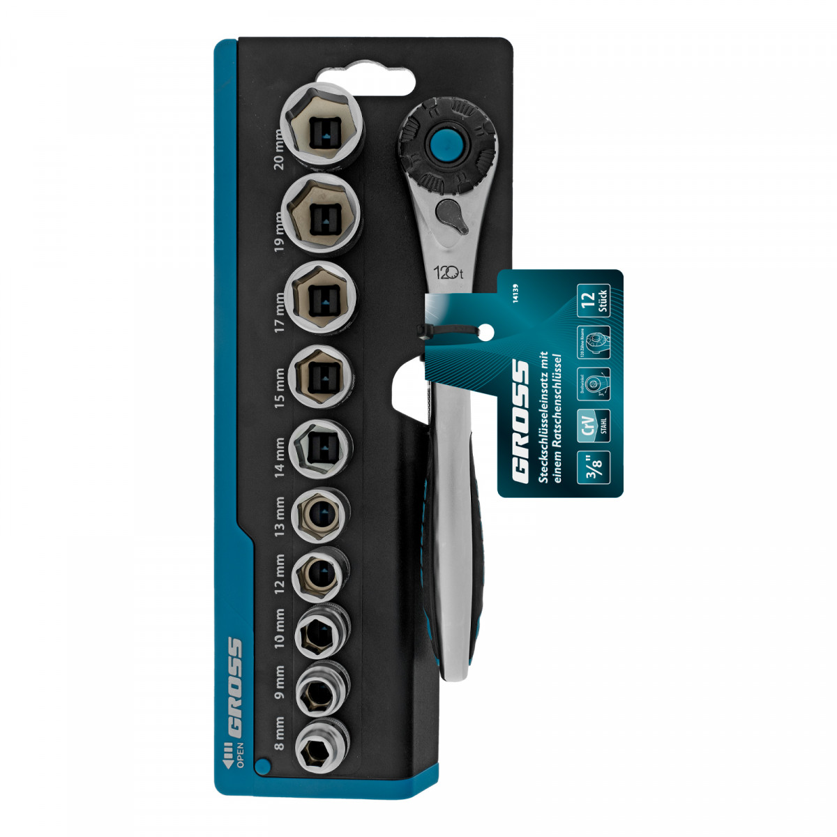 Набор торцевых головок, трещотка 120 зубьев, 3/8", CrV, 12 предметов Gross