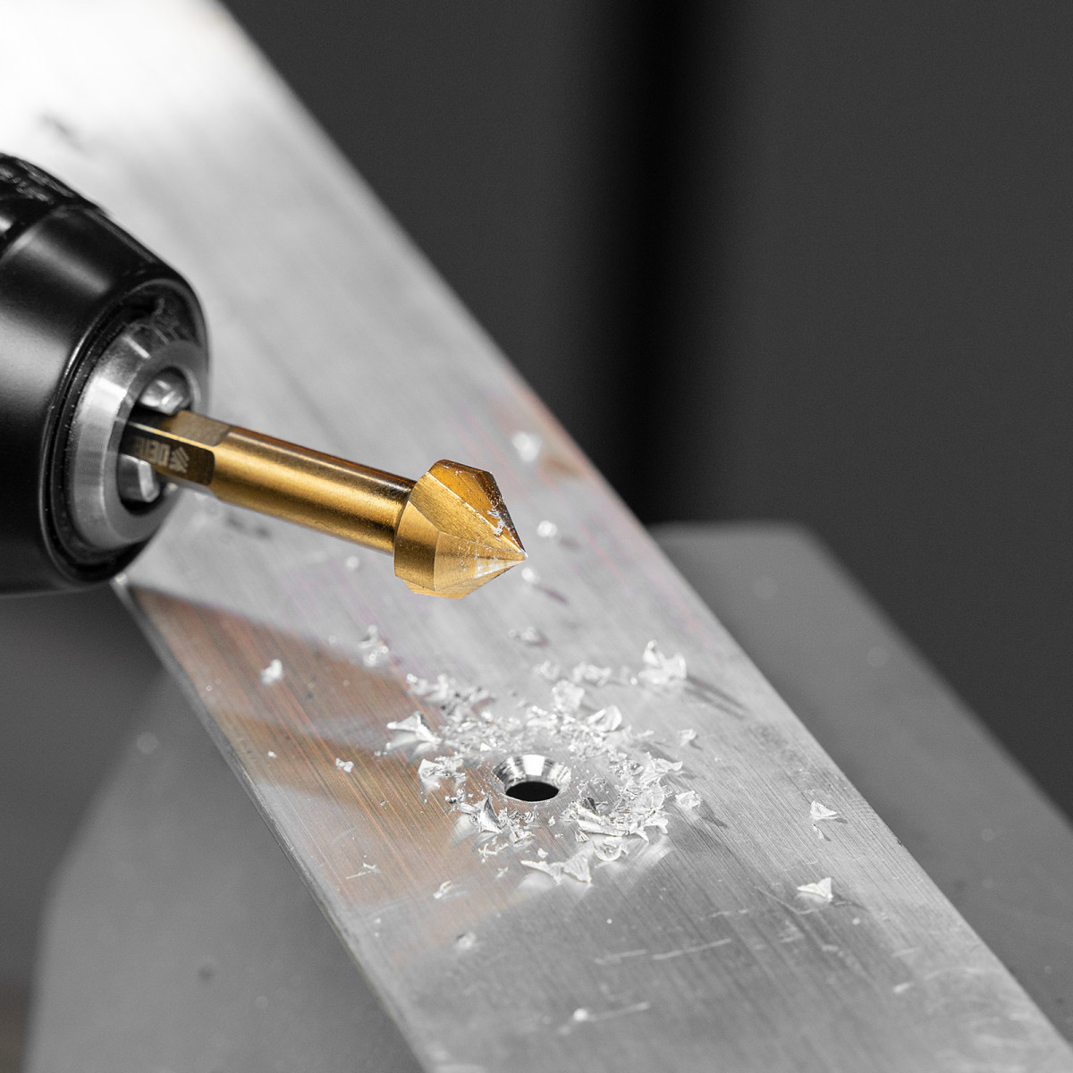 - Удобное хранение и транспортировка — зенковки упакованы в прочный металлический кейс.