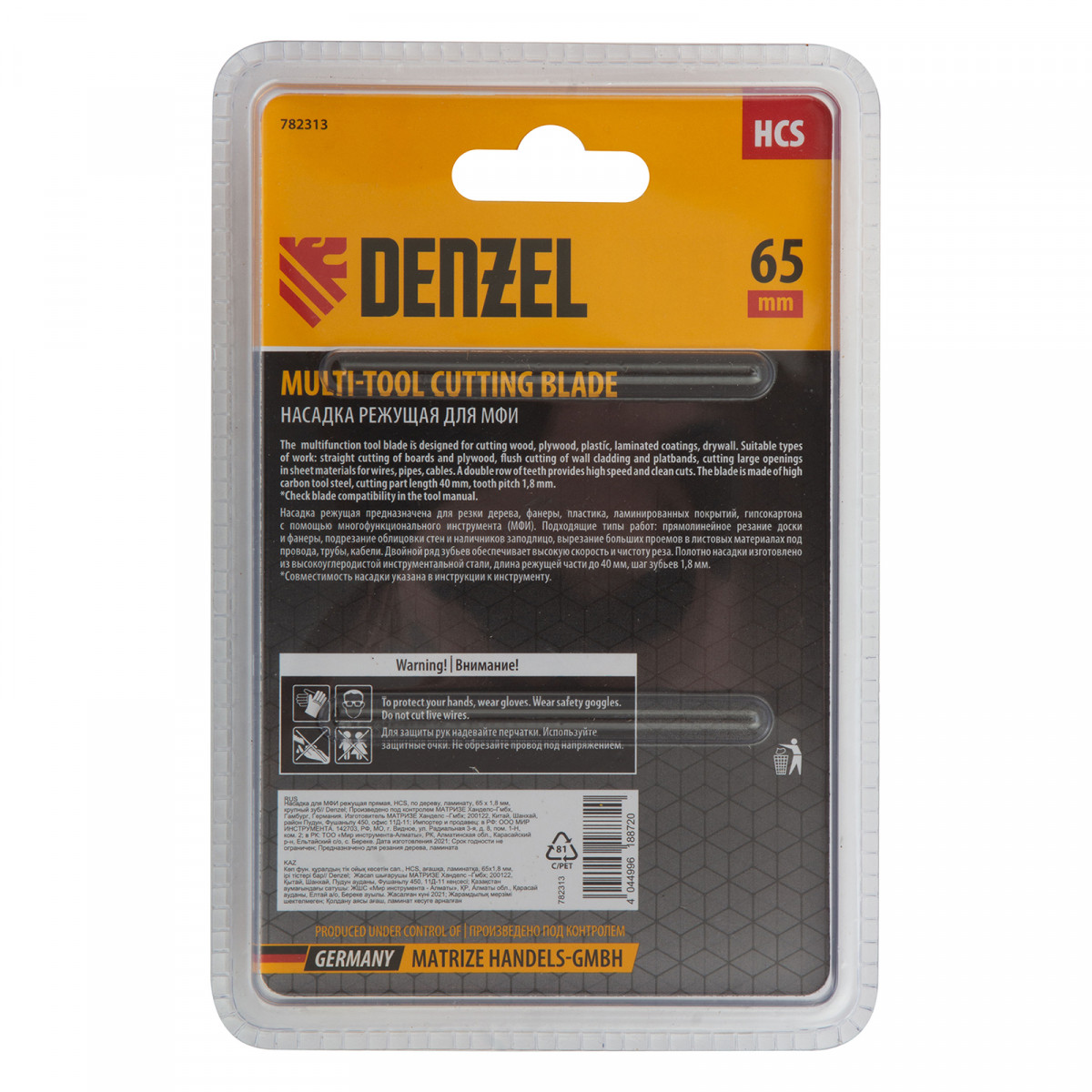 Насадка для МФИ режущая прямая, HCS, по дереву, ламинату 65 х 1.8 мм, крупный зуб Denzel