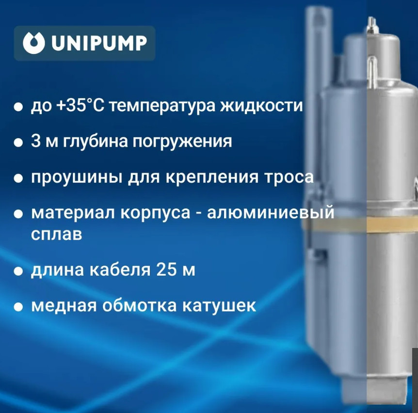 Насос вибрационный Бавленец-М, 25м верхний забор UnipumpВибрационный насос UNIPUMP Бавленец-М верхний забор подходит для подачи питьевой воды. Предназначен для автономного водоснабжения частных домов, небольших фермерских хозяйств.