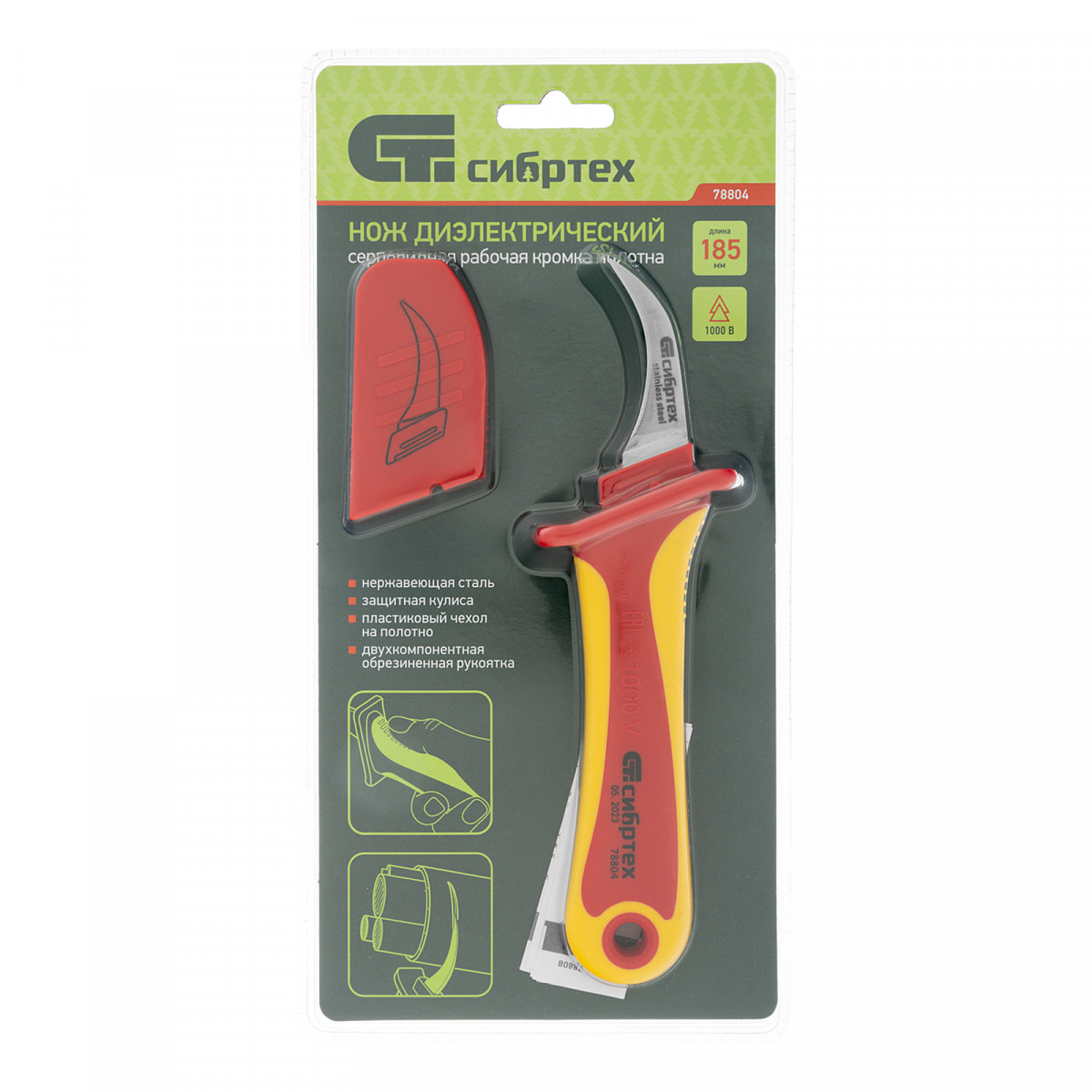 Нож диэлектрический до 1000 В, серповидная рабочая кромка полотна Сибртех