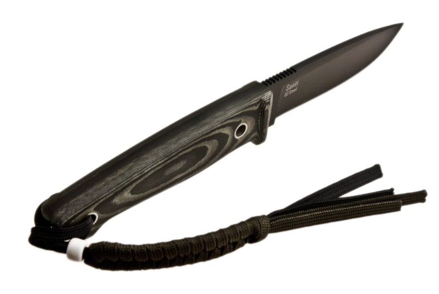 Осторожно, обладая традиционной drop-point формой клинка, дающей максимальную универсальность использования, из первоклассной стали D2 и рукоятью из современной сверхпрочной микарты Santi гарантированно понравится вам сразу как только вы возьмете его в руку.