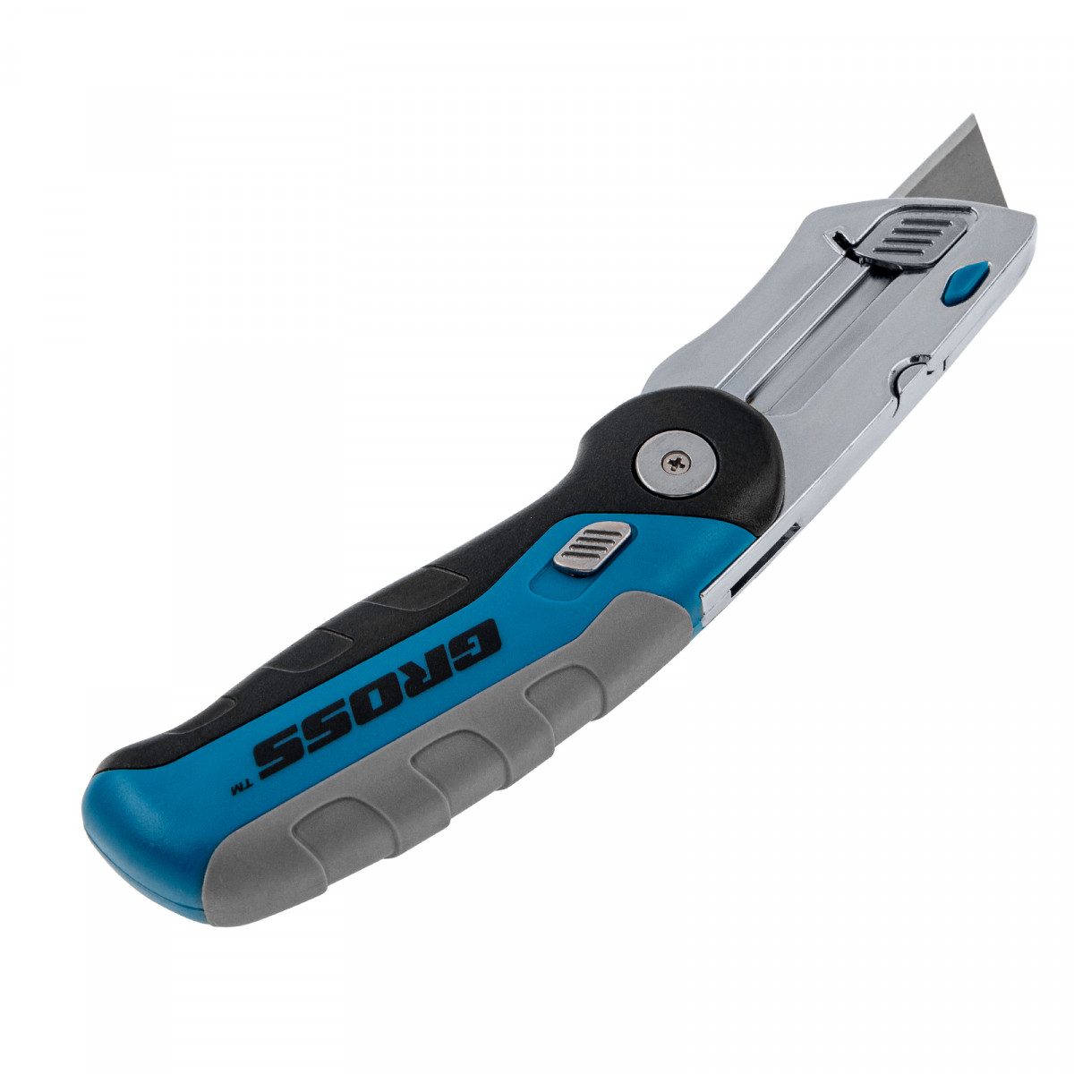 Нож ремонтно-монтажныйный, складной, трехкомпонентная рукоятка, контейнер-держатель для лезвий, 175 мм, 2 запасных лезвия Gross