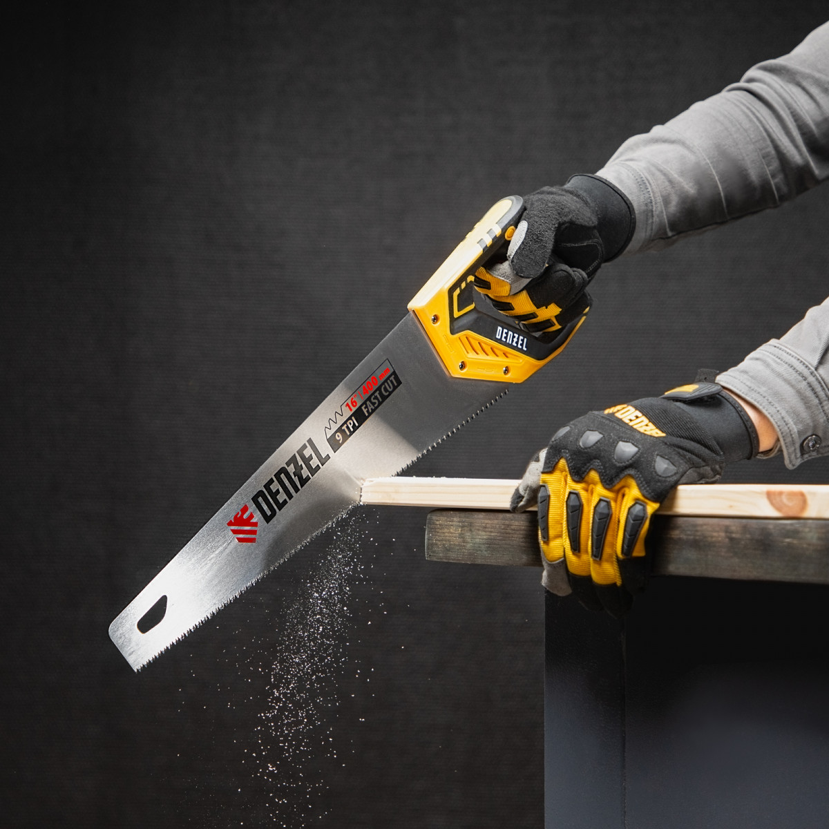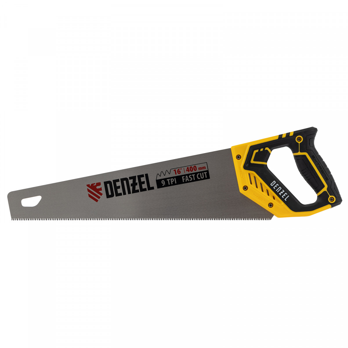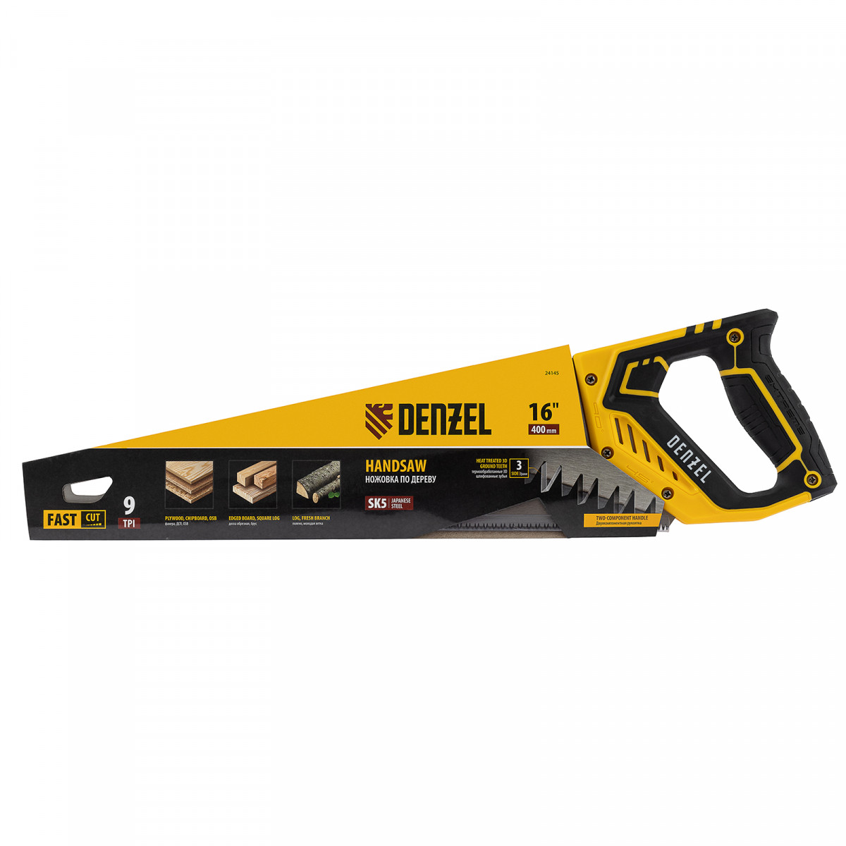 Ножовка по дереву, 400 мм, 9 TPI, зуб 3D, двухкомпонентная рукоятка Denzel