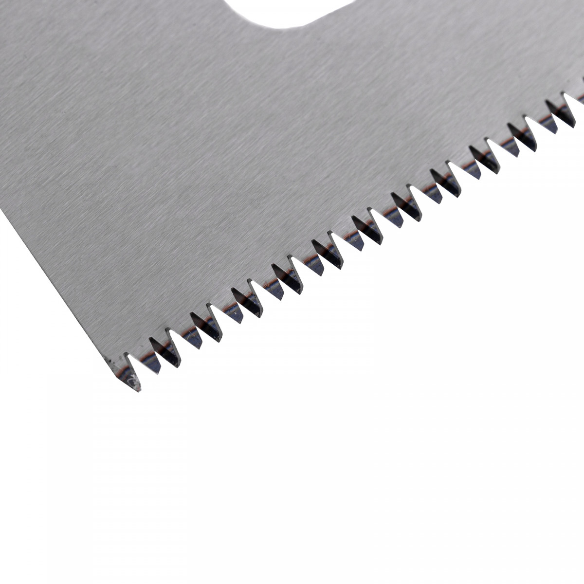Ножовка по дереву Gross PIRANHA 24123 с полотном длиной 300 мм, калеными зубьями с 3D-заточкой и шагом 11 TPI, с 2-компонентной рукояткой, предназначена для распиловки заготовок из древесины, ДСП, ДВП, МДФ и ламината, а также из пластических материалов, таких как пенополистирол и полиуретан. Может производить продольный и поперечный распил. Мелкие зубья с шагом 11 TPI позволяют выполнять точный и чистый рез. Ножовка обладает высокой производительностью благодаря трехгранной заточке зубьев. Инструмент используется в столярном деле.