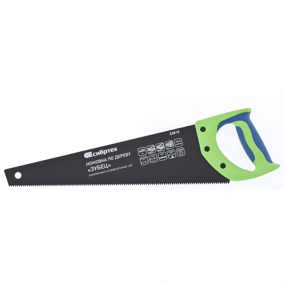 Ножовка по дереву "Зубец", 400 мм, 7-8 TPI, каленый зуб 2D, защитное покрытие, двухкомпонентная рукоятка Сибртех