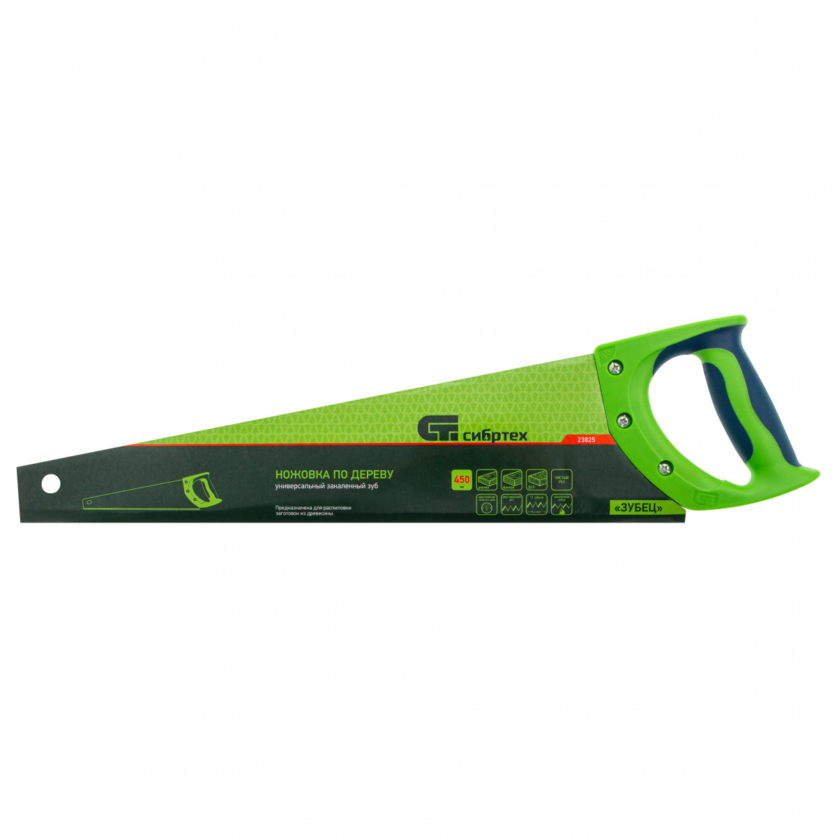 Ножовка по дереву "Зубец", 450 мм, 11 TPI, зуб 2D, каленый зуб, 2-х компонентная рукоятка Сибртех