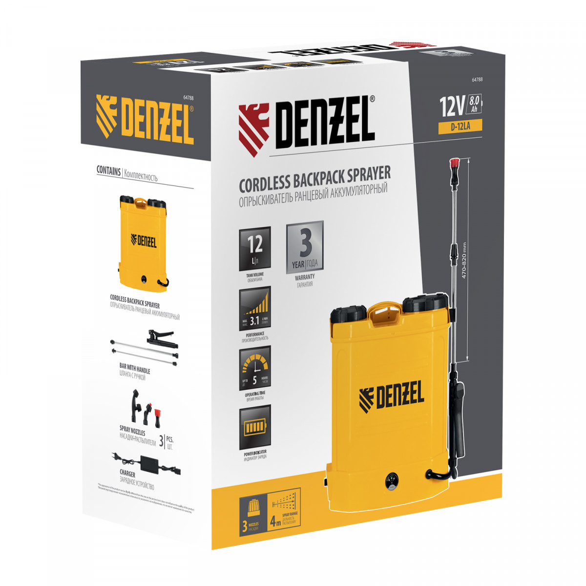 Опрыскиватель ранцевый аккумуляторный D-12LA, 12 л, 12 В, 8 Ач Denzel