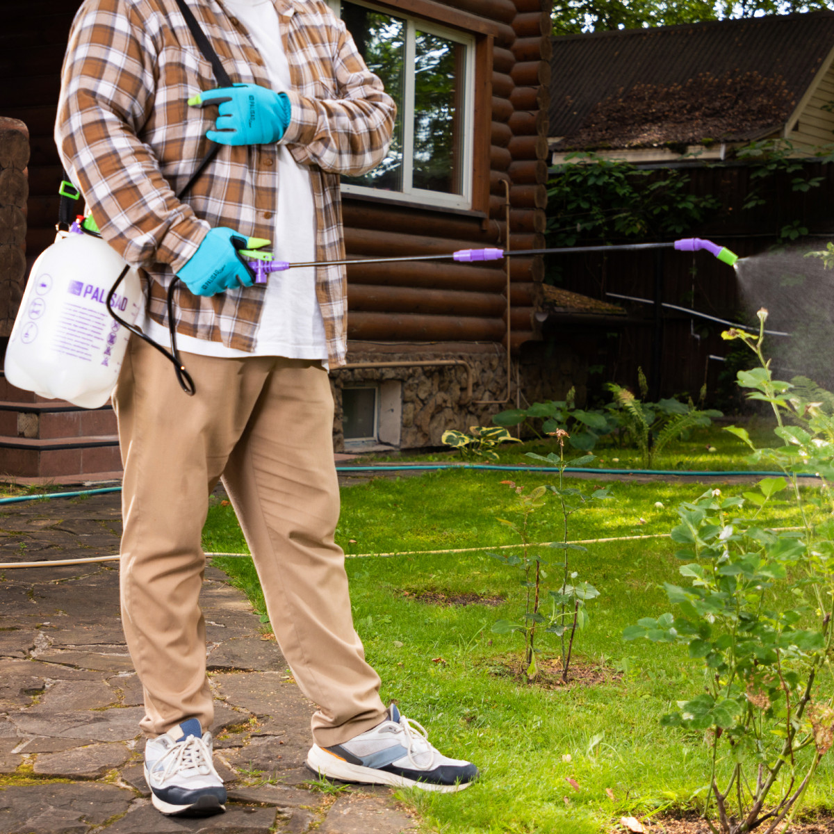 • Продуманная конструкция — опрыскиватель можно перемещать за ручку помпового насоса.