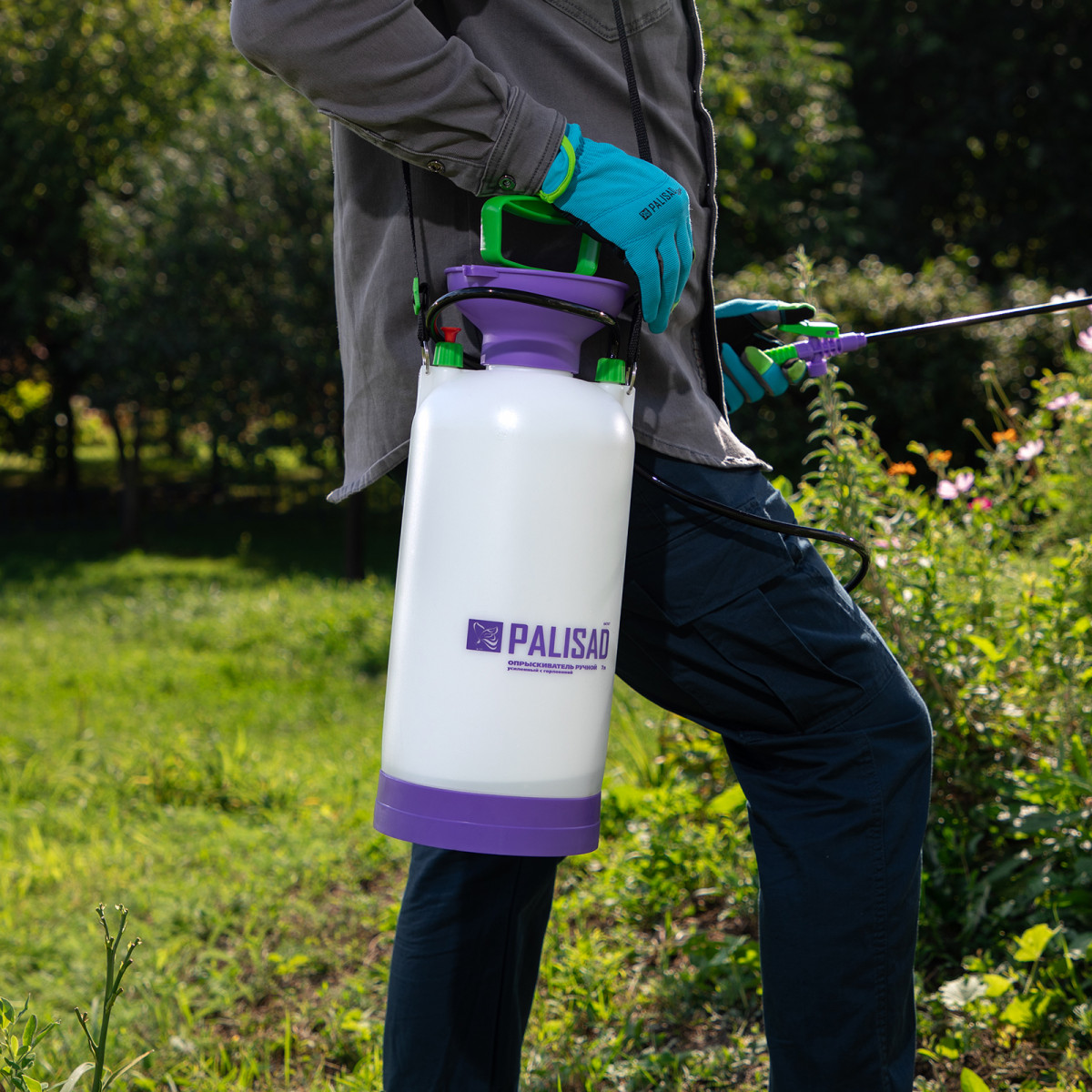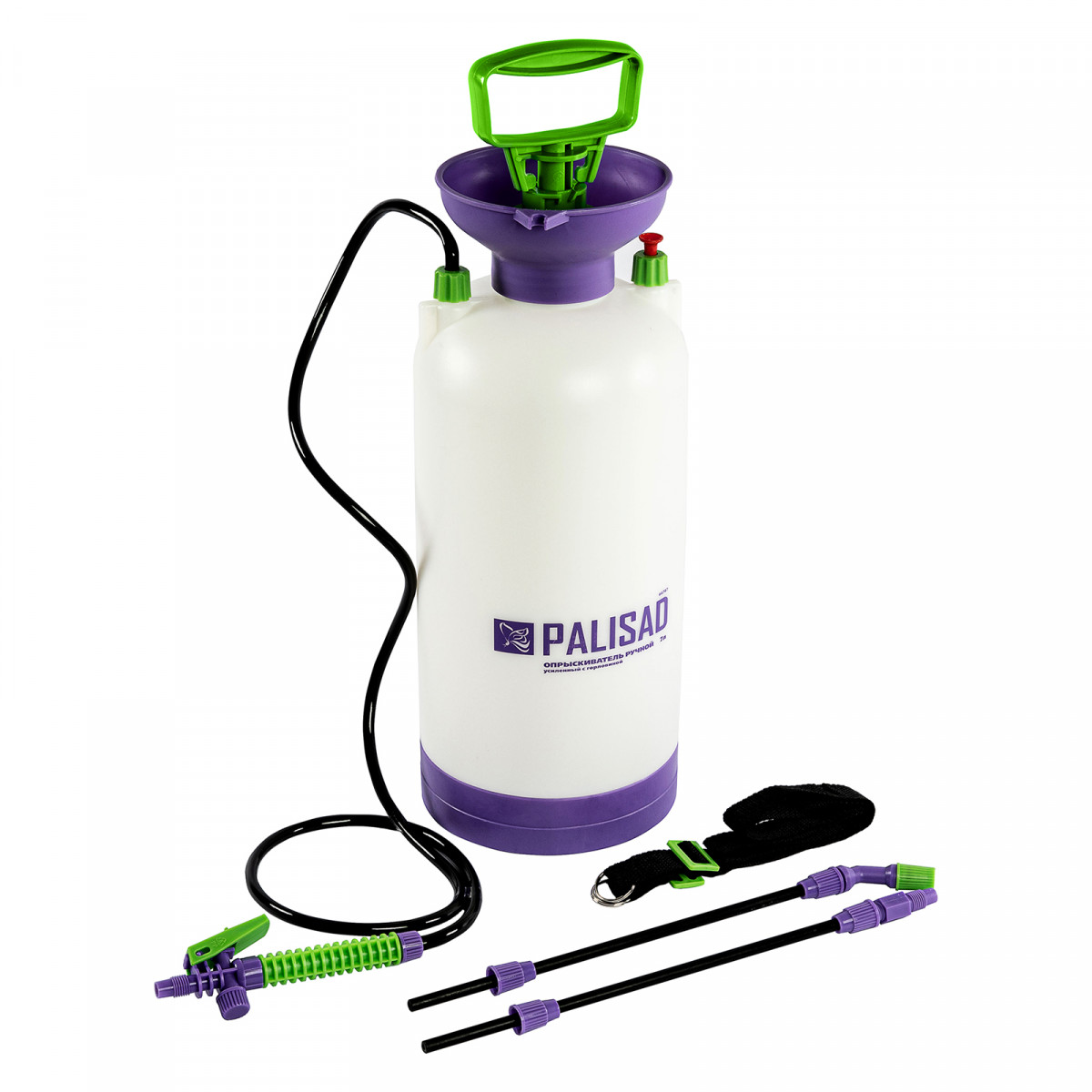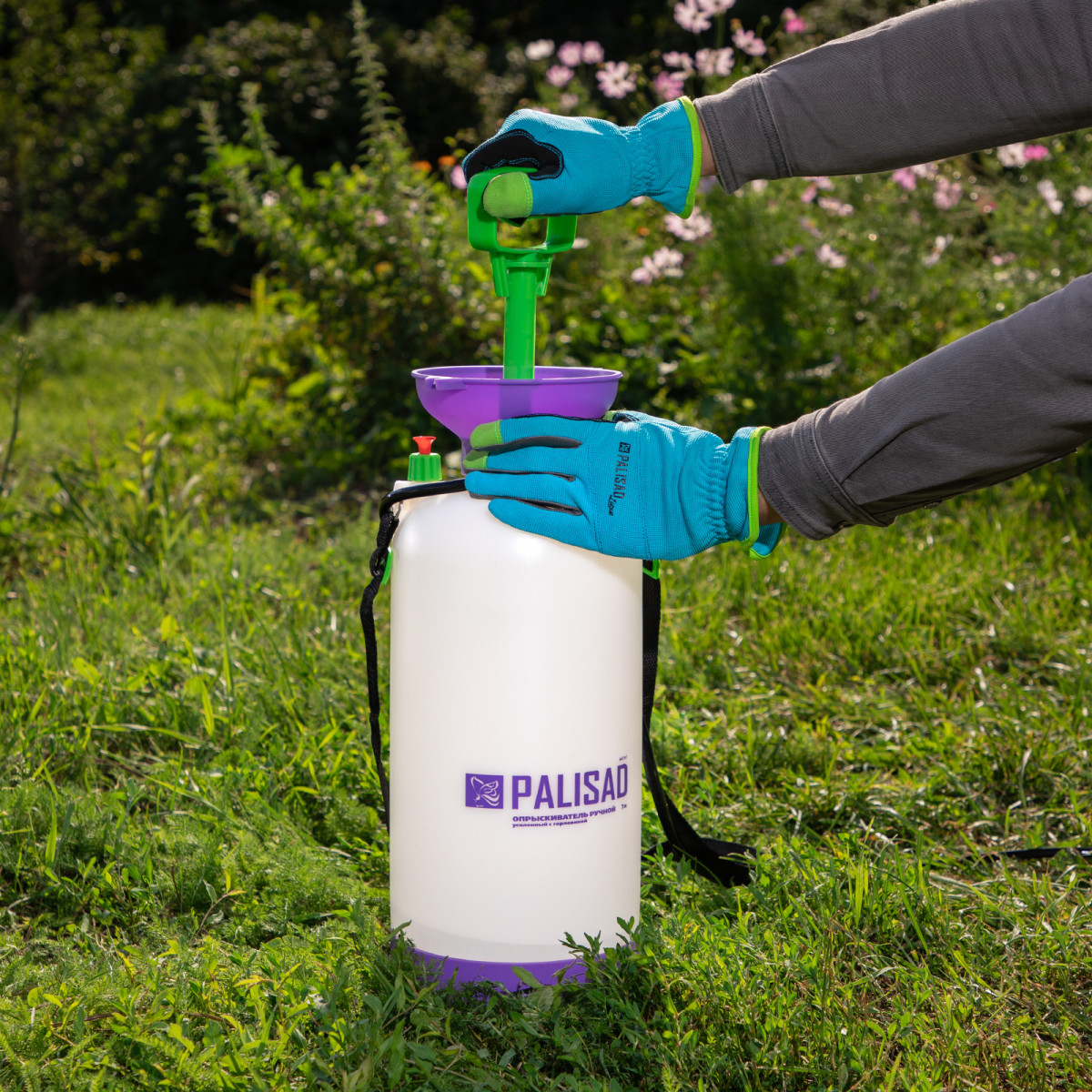 Опрыскиватель ручной усиленный с горловиной 7 л, с насосом, шлангом и разбрызгивателем Palisad