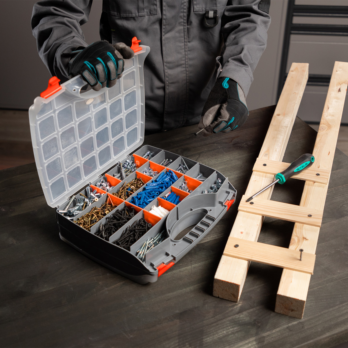 52 секции органайзера позволяют организовать хранение в зависимости от потребностей.