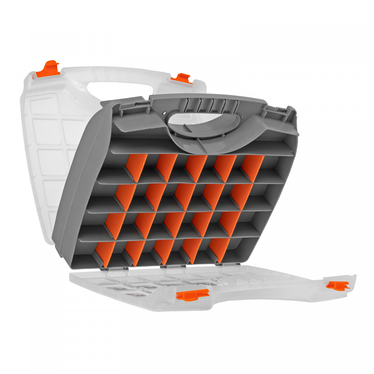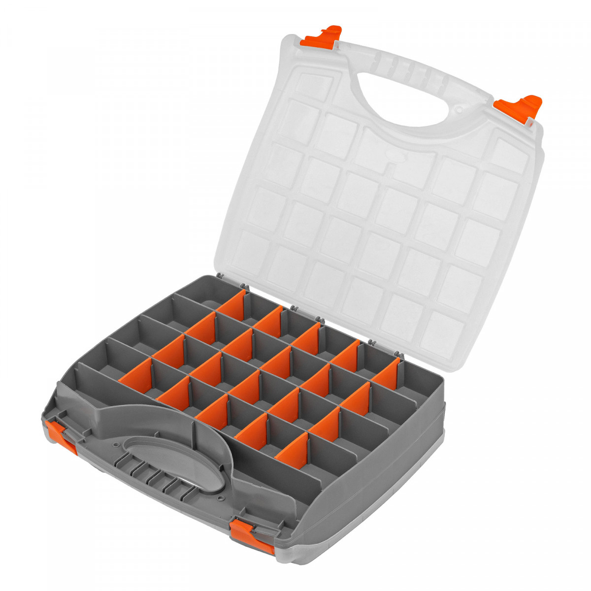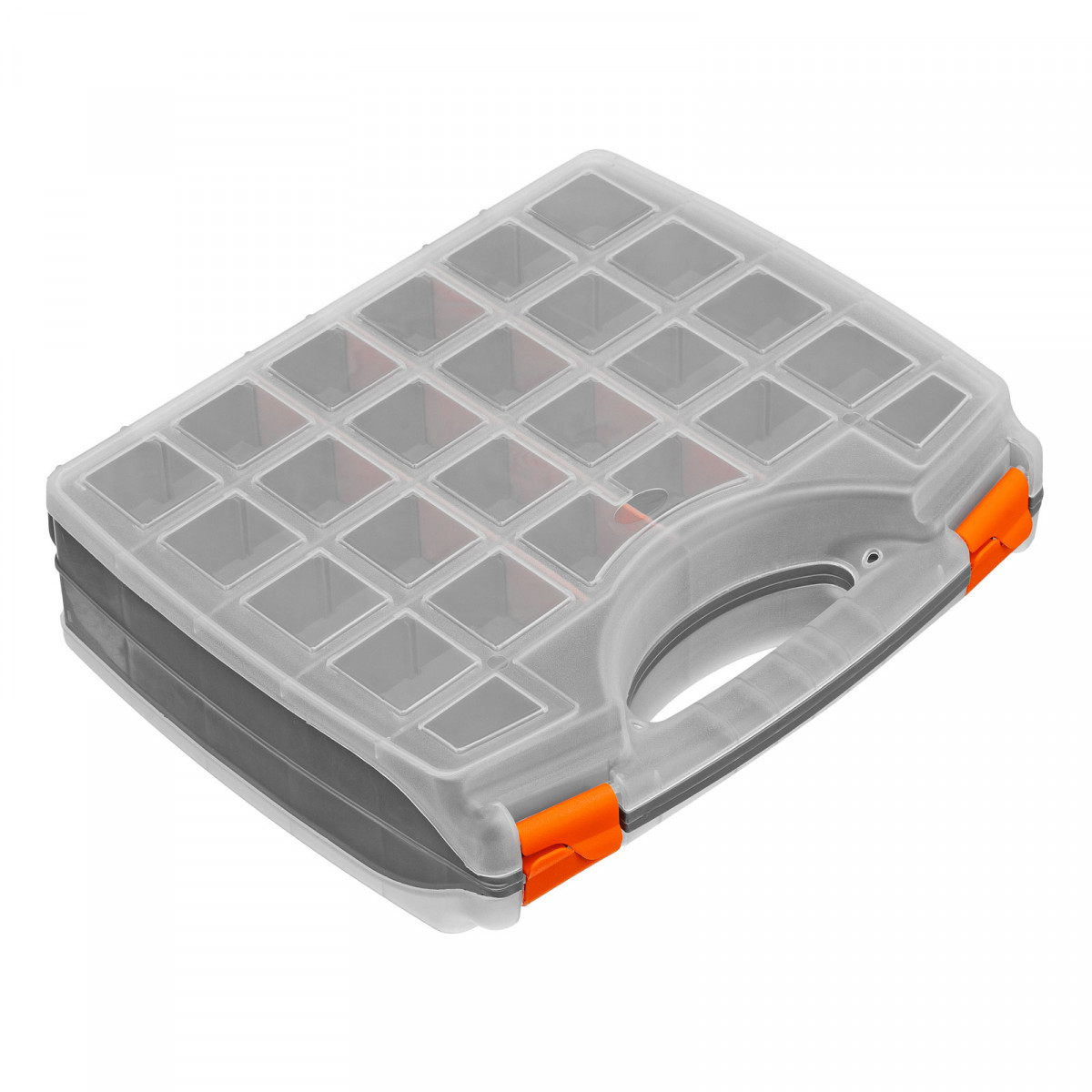 Двухсторонний органайзер из пластика Stels 90709 размером 325 х 280 х 85 мм пригодится в хозяйстве и мастерской для хранения крепежных элементов, принадлежностей для рукоделия, снастей и т.д. Он обеспечивает быстрый доступ к предметам, не допуская их перемешивания и утери.