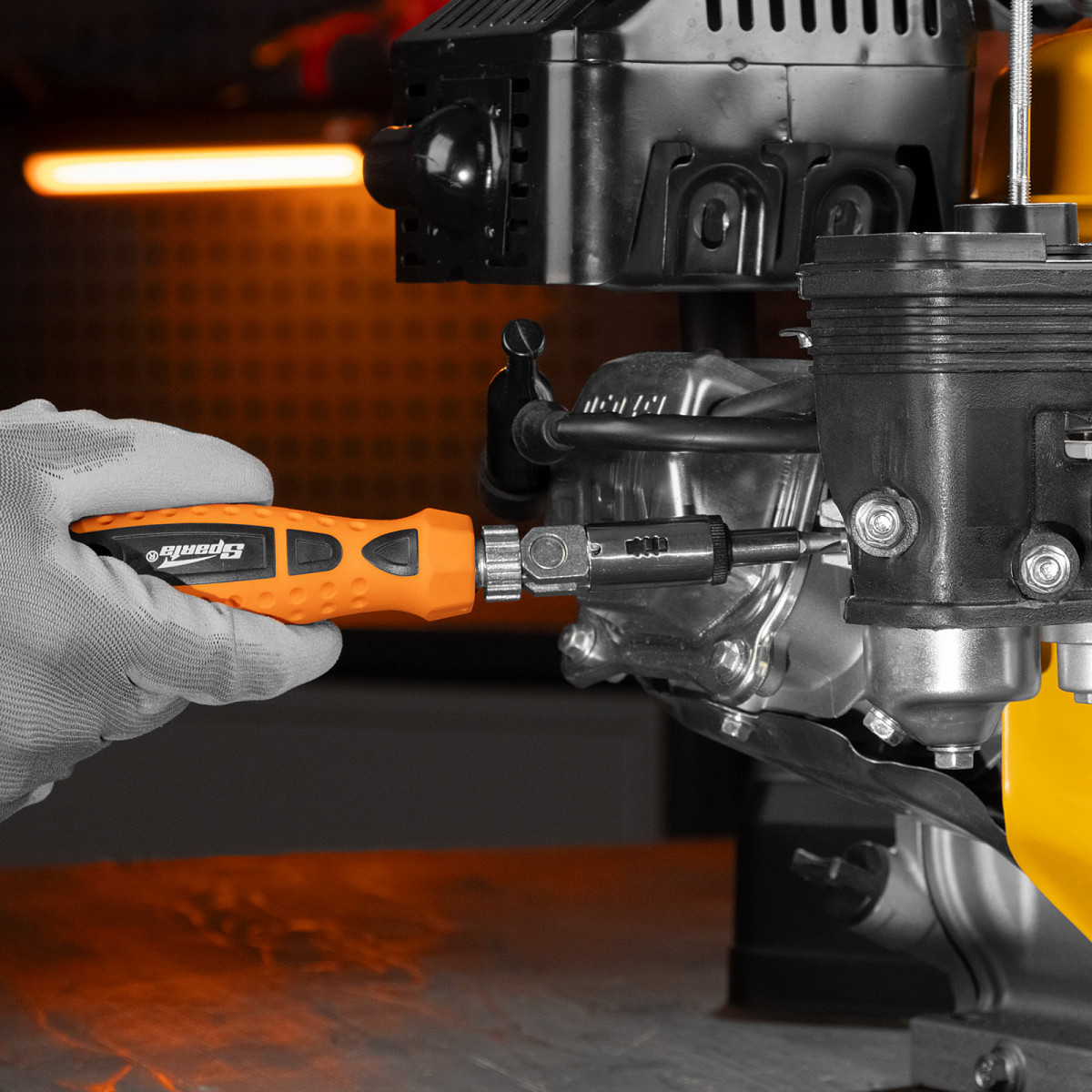 - Поворотная голова с пятипозиционной фиксацией обеспечивает возможность работы в труднодоступных местах и ограниченном пространстве.