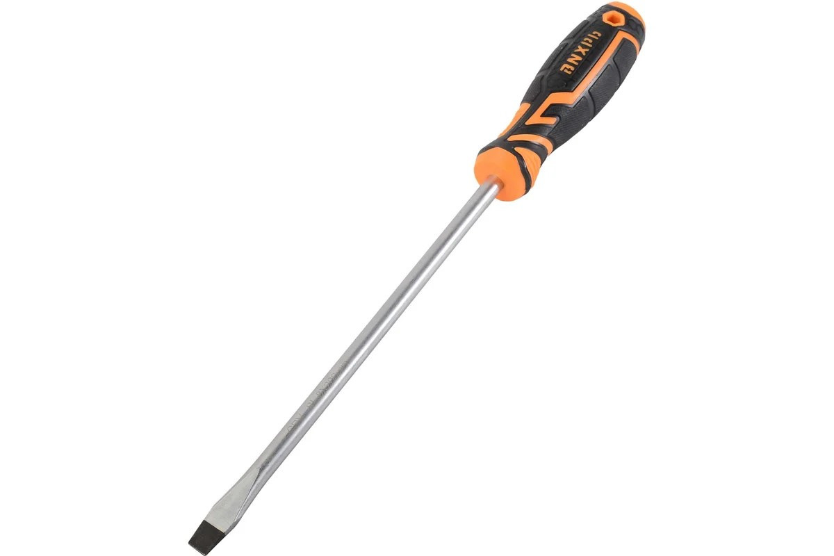 Отвёртка шлицевая предназначена для монтажных и демонтажных работ крепежных элементов. Стержень из хромванадиевой стали (CrV) имеет длину 20 см, закален и имеет хромоникелевое покрытие. Наконечник намагничен и имеет типоразмер шлица SL8. Двухкомпонентная рукоятка обеспечивает удобный хват и не скользит при работе.Отвёртка шлицевая ВИХРЬ SL8 идеально подходит для работы с плоскими шлицами на различных объектах, таких как старая техника, электрика, мебель и другие устройства.
