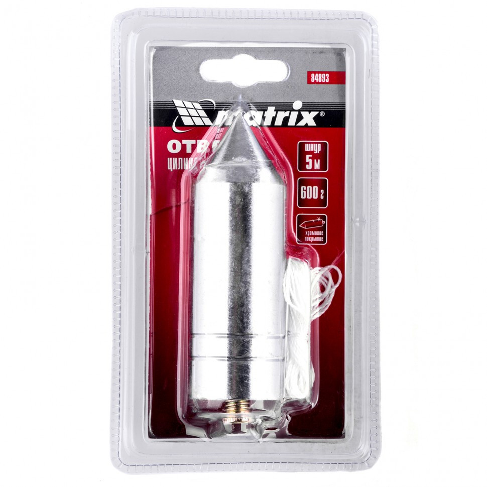 Цилиндрический отвес Matrix 84893 весом 600 г, в комплекте со шнуром 5 м, позволяет осуществить контроль вертикали. Он пригодится мастерам при проведении работ внутри и снаружи помещений. Отвес в форме цилиндра обеспечивает отличную центровку. За счет увеличенного веса 600 г оптимален для наружных работ.