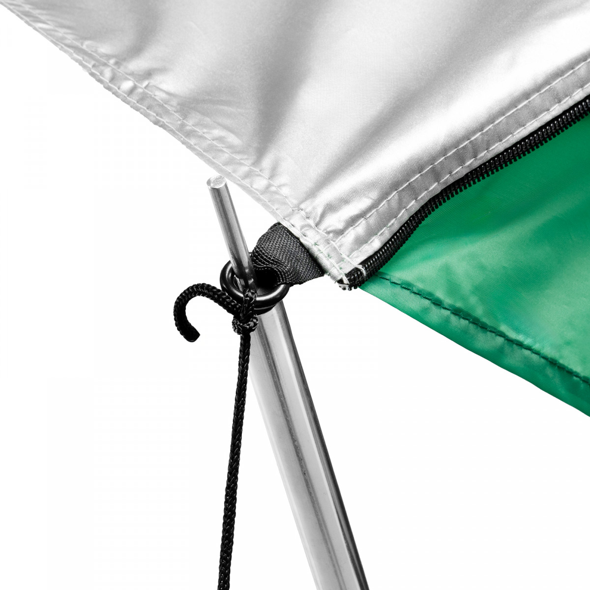 - Напольное покрытие выполнено из непромокаемого армированного полиэтилена 110 G, это гарантирует комфортный отдых даже при высокой влажности.