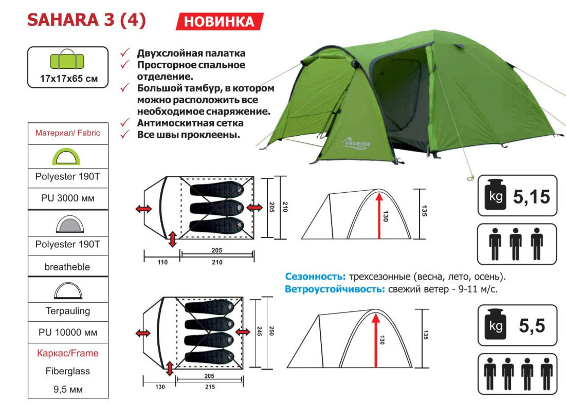 Палатка SAHARA-4 PREMIER – четырехместная палатка универсальной серии, которая идеально подойдет для походов и путешествий.