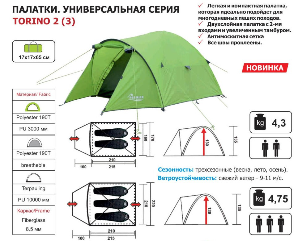 Палатка TORINO-3 PREMIER – трехместная палатка универсальной серии, которая идеально подойдет для пеших походов и велосипедных путешествий.