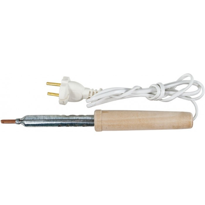 Паяльник предназначен для пайки проводов, работы с печатными платами и других видов работ с электронными деталями. Качественный нагревательный элемент обеспечивает быстрый разогрев наконечника для нужной температуры. Удобен в использовании благодаря деревянной рукоятке.