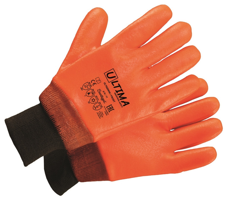 Перчатки ULTIMA FROST ULT620WW утепленные с ПВХ покрытием, трикотажная эластичная манжета с двойной ворсистой основой из 100 % хлопка «джерси». Морозостойкое ПВХ покрытие, шероховатая поверхность. Сигнальный оранжевый цвет обеспечивает дополнительную безопасность во время работы.