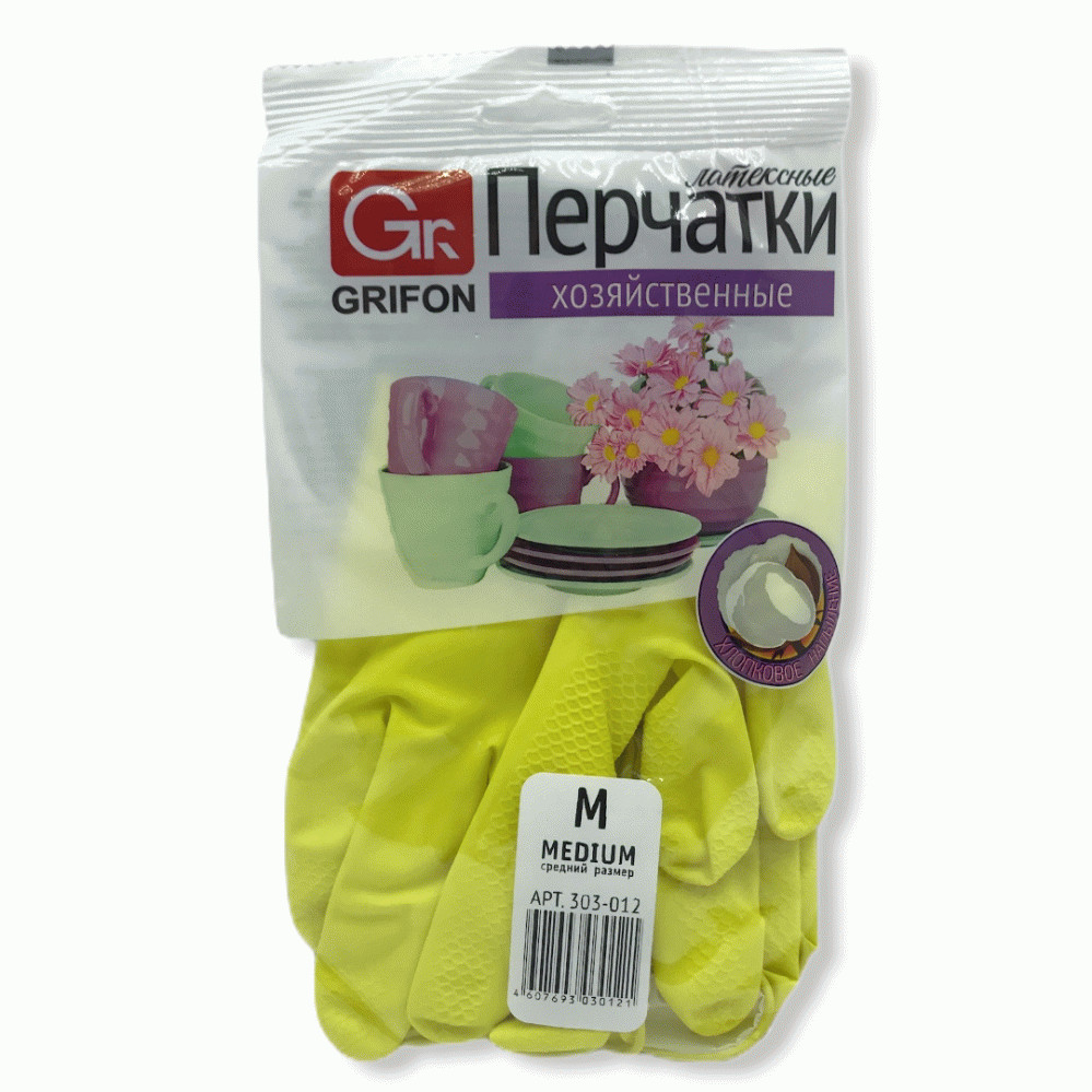 Латексные перчатки GRIFON с хлопковым напылением обеспечивают надежную защиту рук при работе с химическими веществами и другими вредными веществами. Размер L подходит большинству взрослых.